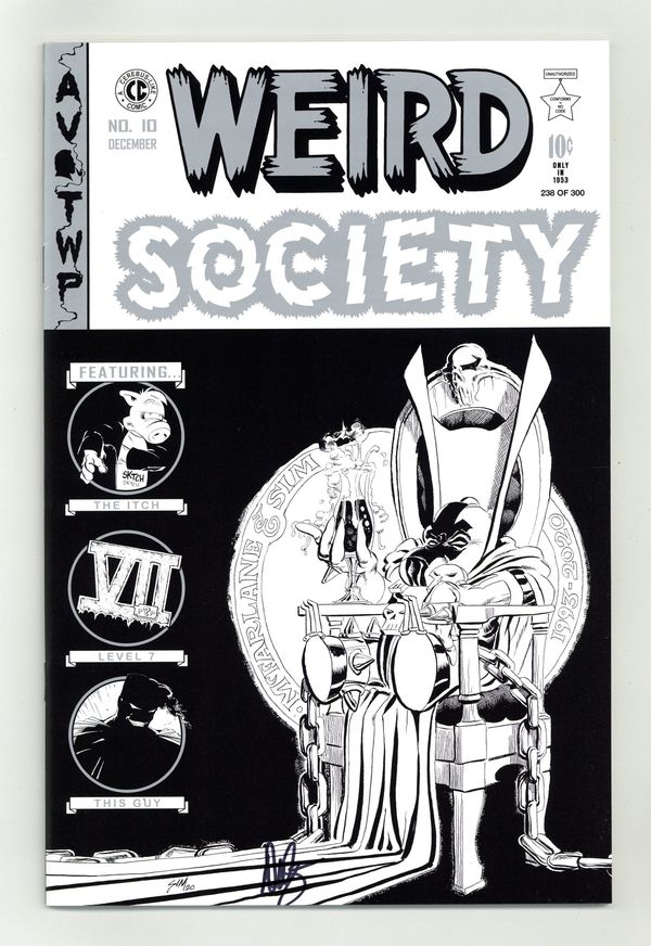 Published Dec 2020 by Aardvark-Vanaheim.$21.00Classic Platinum Variant D Cover - Signed by Dave Sim - Limited to 300 copies. A 48 page deluxe, expanded edition with updated art, new covers, and rarities! Cover by Dave Sim. Story by Dave Sim. Art by Todd McFarlane, Dave Sim. "Crossing Over!" Guest-starring Cerebus. Todd Mcfarlane's masterful inking style radically changed the aesthetics of comic-books forever. Transforming the 1980s homogeneous bullpen style of the Big 2 to the hyper-dynamic style that dominates the modern era. McFarlane's loose, detailed, energetic art alongside Sims cartoon realism brush and line work highlights the power of each artist in the pages of this new edition of SPAWN No. 10! Still as fresh and relevant today as when it first appeared, Dave Sim and Aardvark-Vanaheim have partnered with The Waverly Press to present Sim's new modified version of this classic tale published nearly three decades ago, expanded with new content and rarities from this comics milestone. While the original edition of SPAWN No. 10 was published in full color, this special edition - at Dave Sims insistence - presents the story in black and white. In the original edition, McFarlane drew what Dave Sim has called the definitive Cerebus (...more people saw Todds Cerebus that one month than had seen my Cerebus in the decade prior to SPAWN No. 10). "Remastered" pages with Dave Sim's new art! Working gingerly and painstakingly around his career-ending (2015) wrist ailment, Sim fulfilled what he calls a last ambition to render the Kitchener Sequence as he originally pictured it. He also redrew the Cerebus figures throughout the issue. B&W. 48pgs.