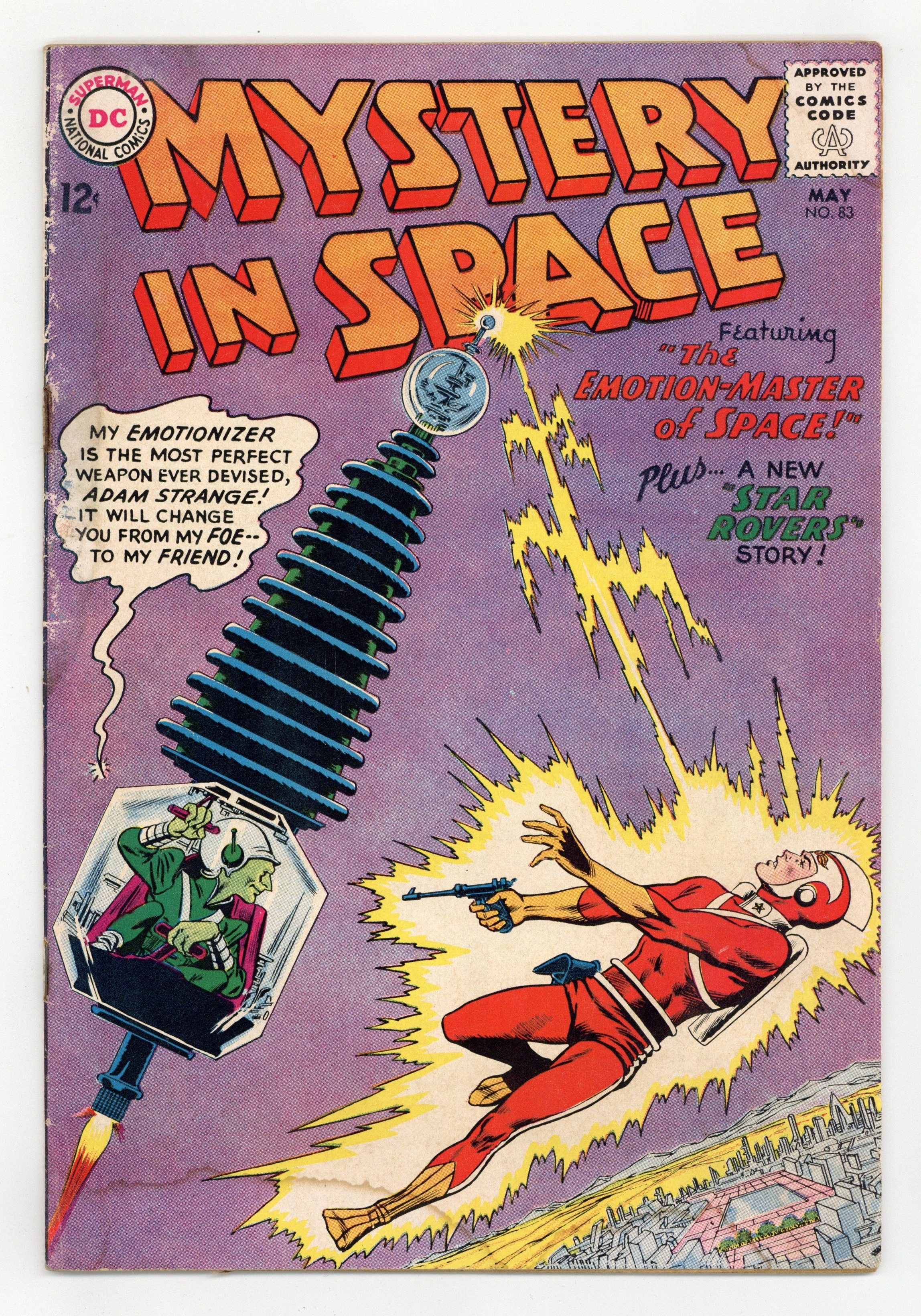 Adam Strange stars in "The Emotion-Master of Space!" (pencils by Carmine Infantino). Star Rovers back-up story: "Who Went Where--and Why?" (art by Sid Greene). Infantino cover pencils. 36 Pages, Full Color. Cover price $0.12.