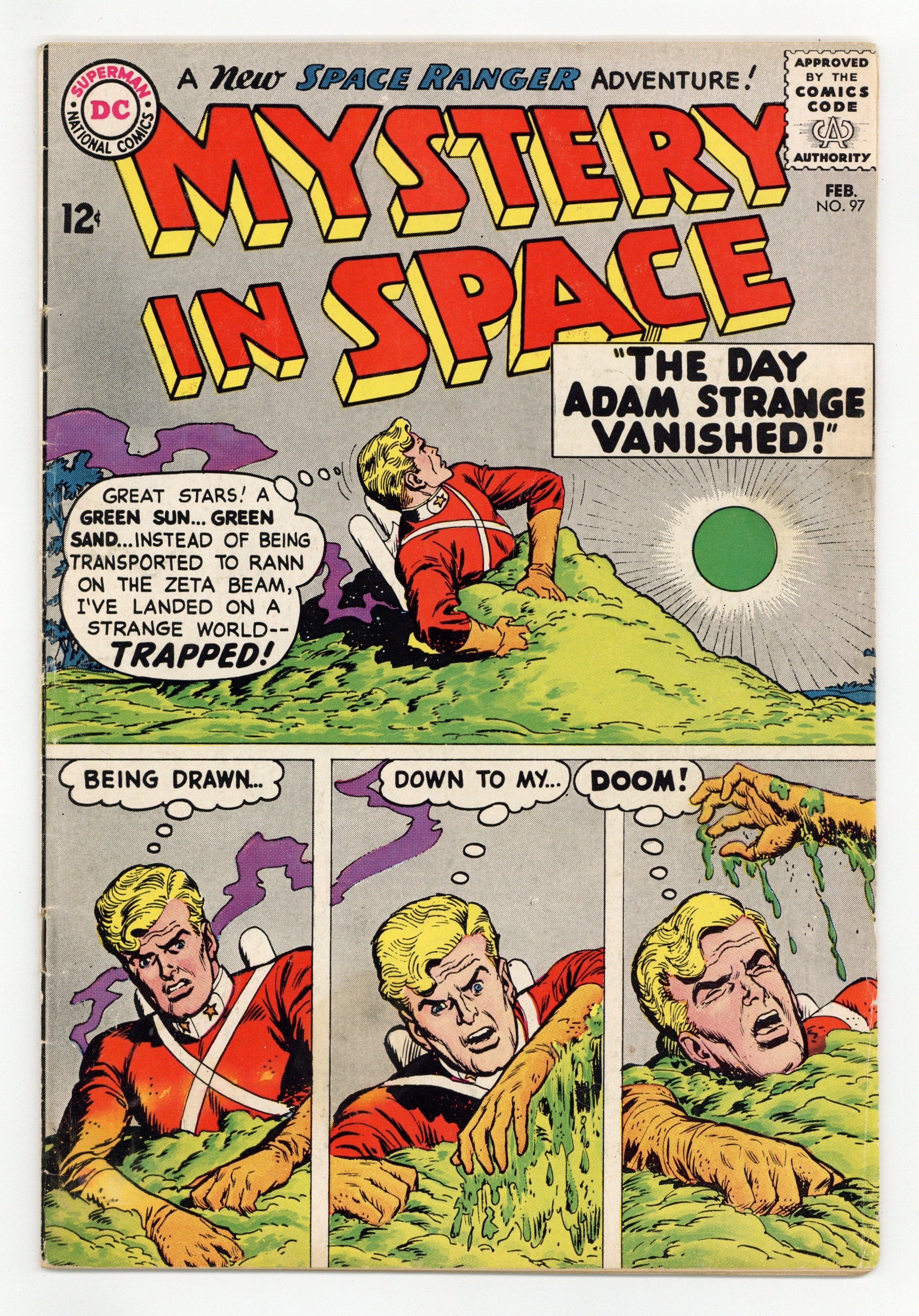 The Space Ranger stars in "The Secret of the Jinxed Moon." Adam Strange stars in "The Day Adam Strange Vanished" (art by Lee Elias). 36 Pages, Full Color. Cover price $0.12.