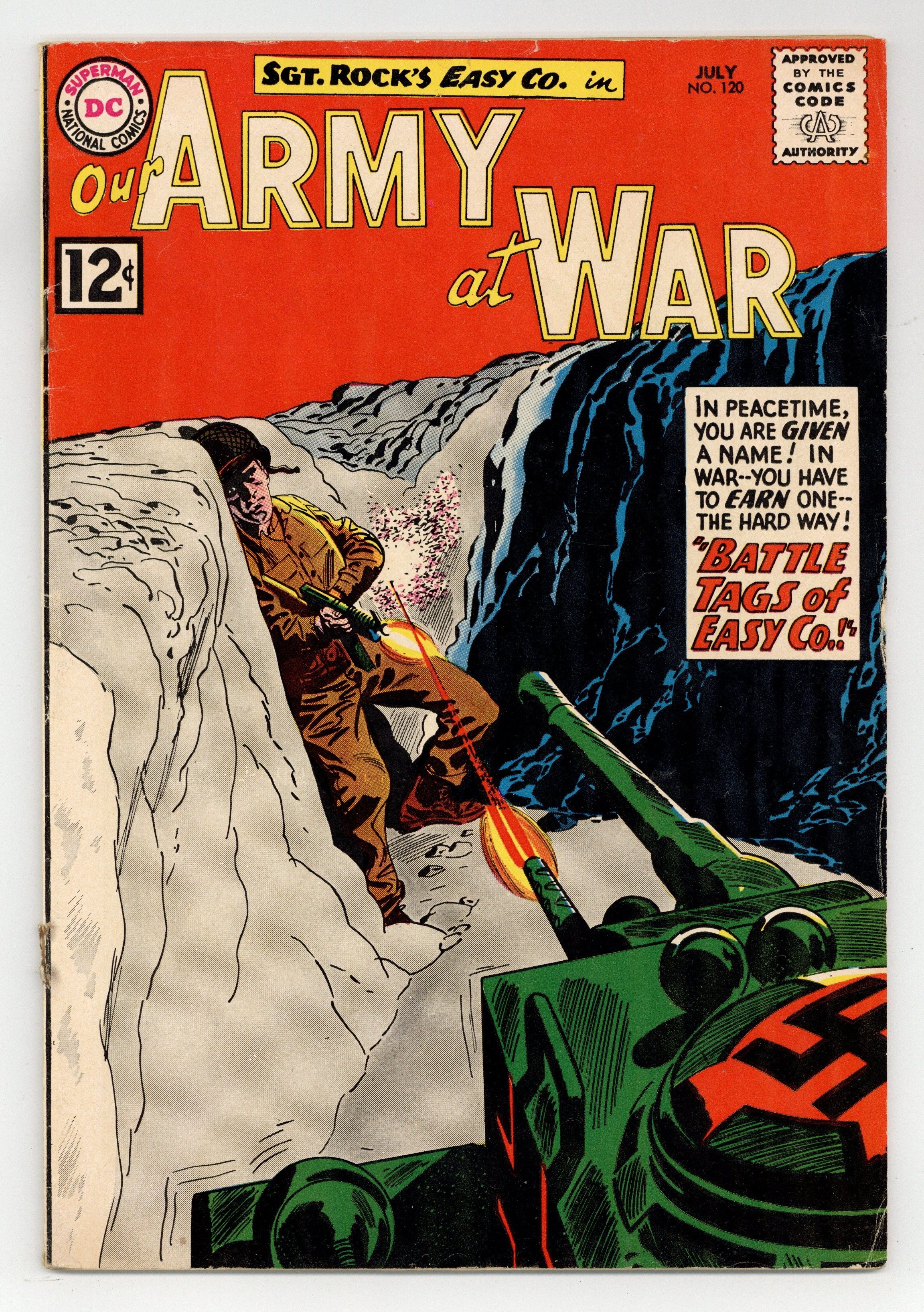 Cover art by Jerry Grandenetti. Battle Tags For Easy starring Sgt. Rock, script by Bob Kanigher, art by Joe Kubert. The Fort Had A Heart, script by Bob Haney, art by Russ Heath. 36 Pages, Full Color. Cover price $0.12.
