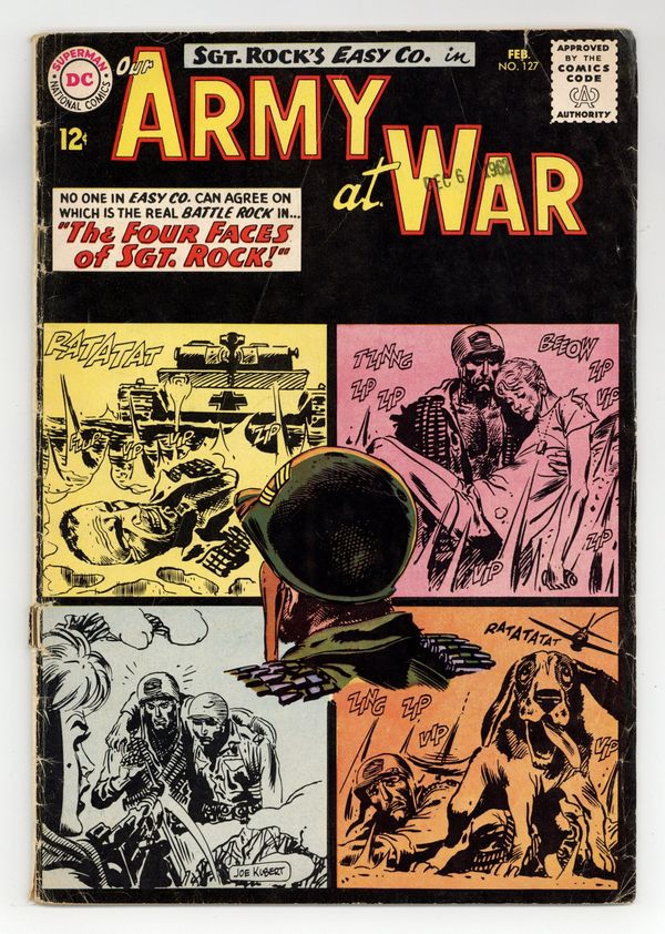 Cover art by Joe Kubert. The 4 Faces of Sgt Rock, script by Bob Kanigher, art by Joe Kubert. No one in Easy Company can figure out who the real Rock is. 36 Pages, Full Color. Cover price $0.12.