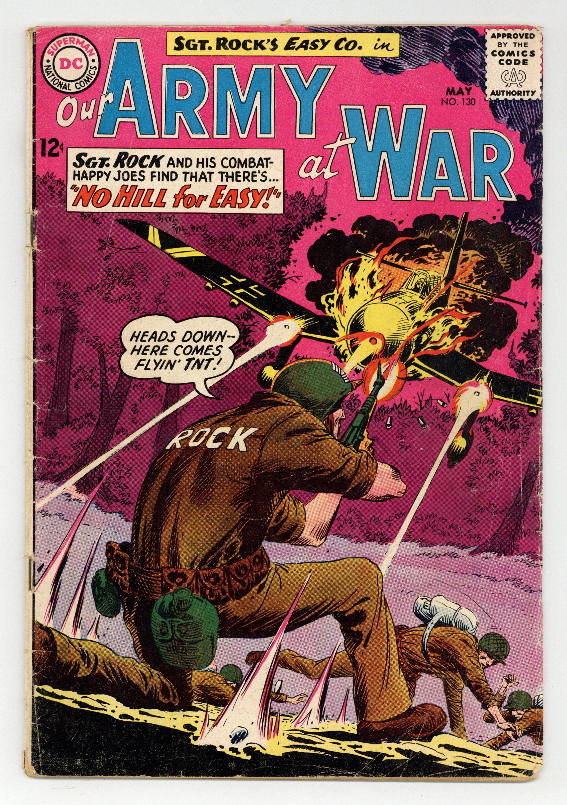 Cover art by Joe Kubert. No Hill For Easy starring Sgt. Rock, script by Bob Kanigher, art by Joe Kubert. Sink Your Own Flattop, script by Bob Haney, art by Jack Abel. 36 Pages, Full Color. Cover price $0.12.