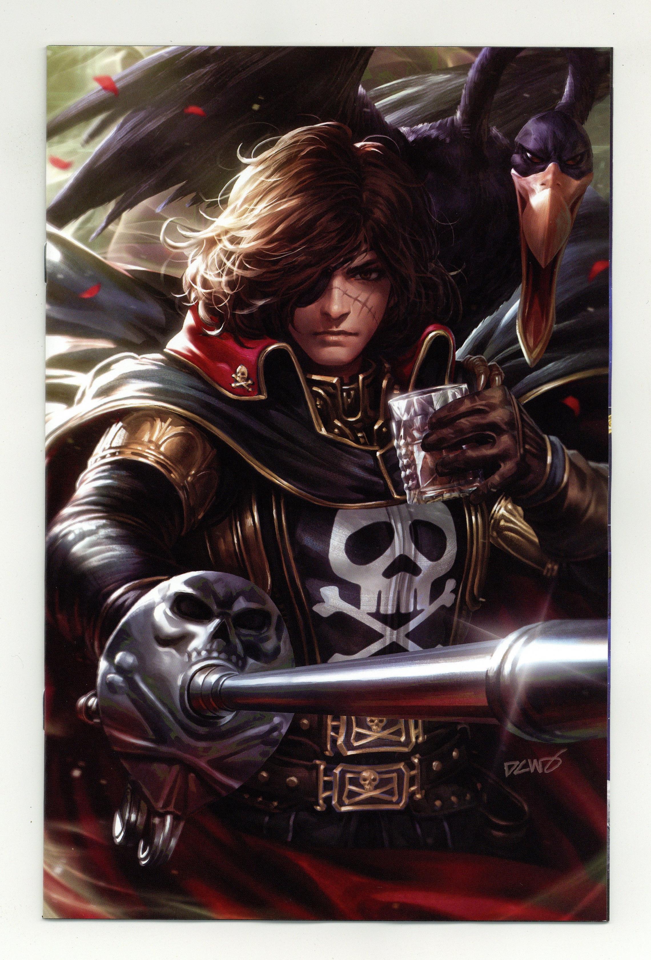 $2.65Limited 1 for 20 Retailer Incentive Variant Cover. Written by Leiji Matsumoto & Jerome Alquie. Art by Jerome Alquie. Cover by Derrick Chew. From the legendary Leiji Matsumoto, along with Jerome Alquie, comes an epic new story! Set within the timeline of the original series, this brand-new Captain Harlock adventure marks the beginning of a new story arc. Planet Earth is threatened by an upcoming invasion by the Sylvidres and despite being banished as a pirate, Captain Harlock won't give up trying to save the world. This time, the source of danger comes directly from Earth, not outer space. A team of scientists discovers a Sylvidres mausoleum where they find information about terrifying genetic manipulations and a destructive power capable of either providing the Sylvidres with immortality or putting an end to their civilization. The unprecedented cold spell hitting Earth might only be a taste of what this new enemy has in store... Will Captain Harlock and his crew manage to solve this mystery and save the Earth from yet another menace? 32 pages, full color. Rated T Cover price $3.99.