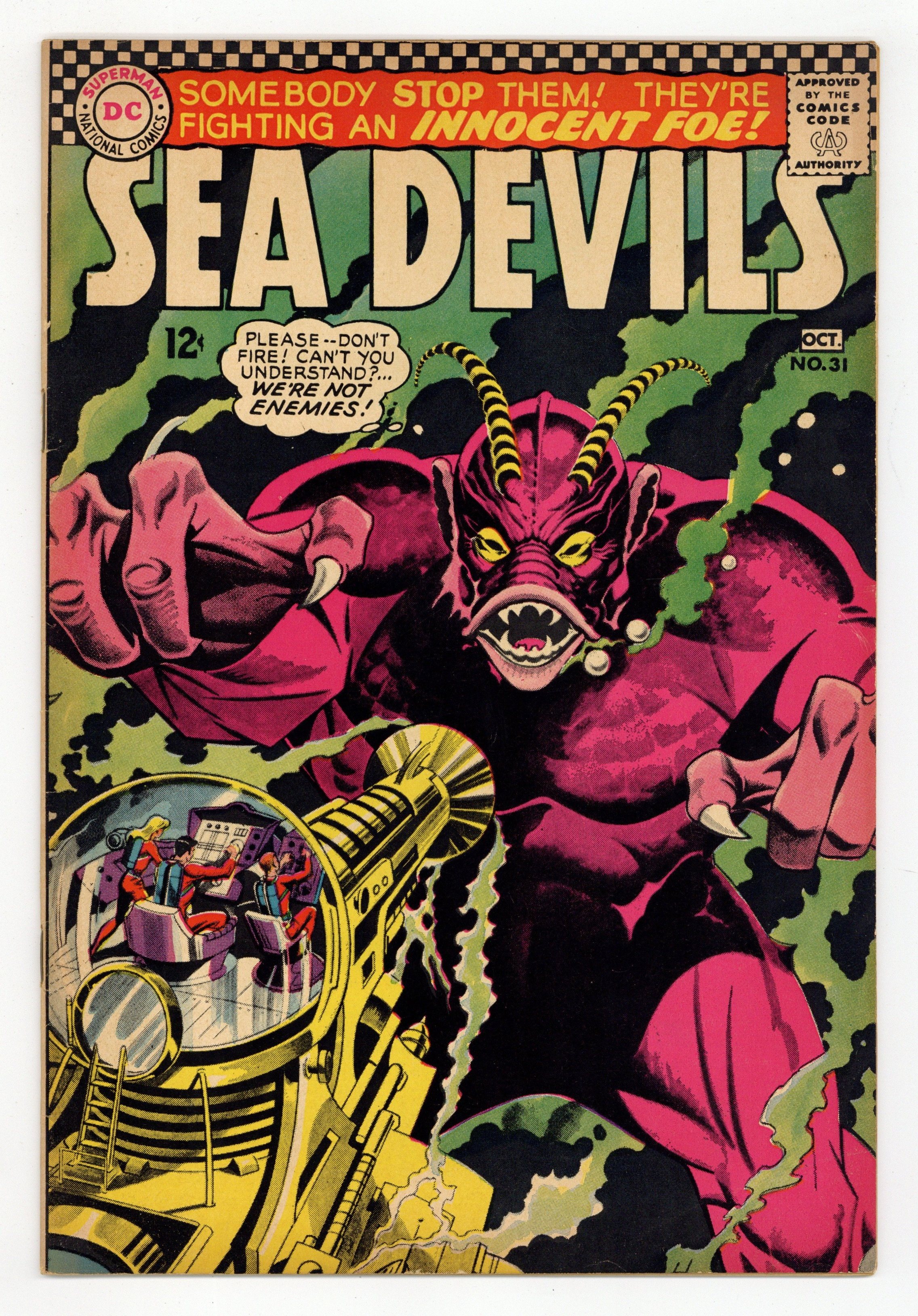The Day the Seas Went Wild - Written by unknown. Art by Howard Purcell and Sheldon Moldoff. Cover by Howard Purcell and Jack Adler (color and wash effects). Somebody stop the Sea Devils! They're fighting an innocent foe! Don't miss this book-length adventure told in three chapters! Plus: 1-page public service announcement "Get Hip to Old Folks!" by Jack Schiff and Sheldon Moldoff. 32 pages, full color. Cover price $0.12.