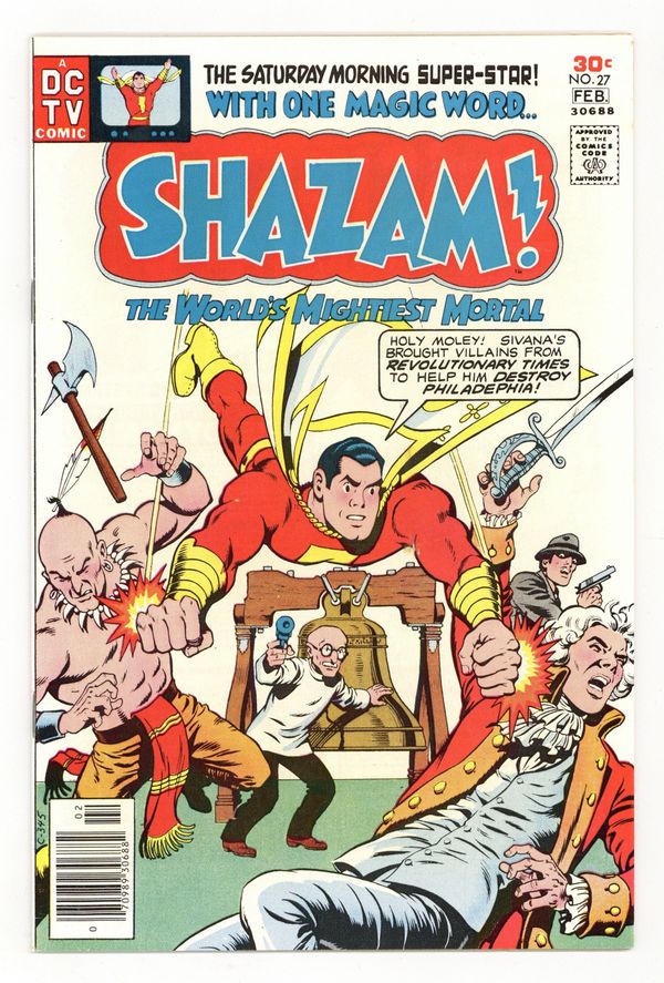 $11.50Cover by Ernie Chan and Kurt Schaffenberger. Fear in Philadelphia!, script by E. Nelson Bridwell, art by Kurt Schaffenberger and Vince Colletta; Sivana uses the reincarnation machine to bring back evil villains from the past; Mercury suggests Billy get Kid Eternity to help him. Hostess Cup Cakes ad with Batman, art by Curt Swan and Vince Colletta. Justice for All Includes Children public service announcement featuring Superman, art by Curt Swan and Vince Colletta. 36 pgs., full color. $0.30. Cover price $0.30.