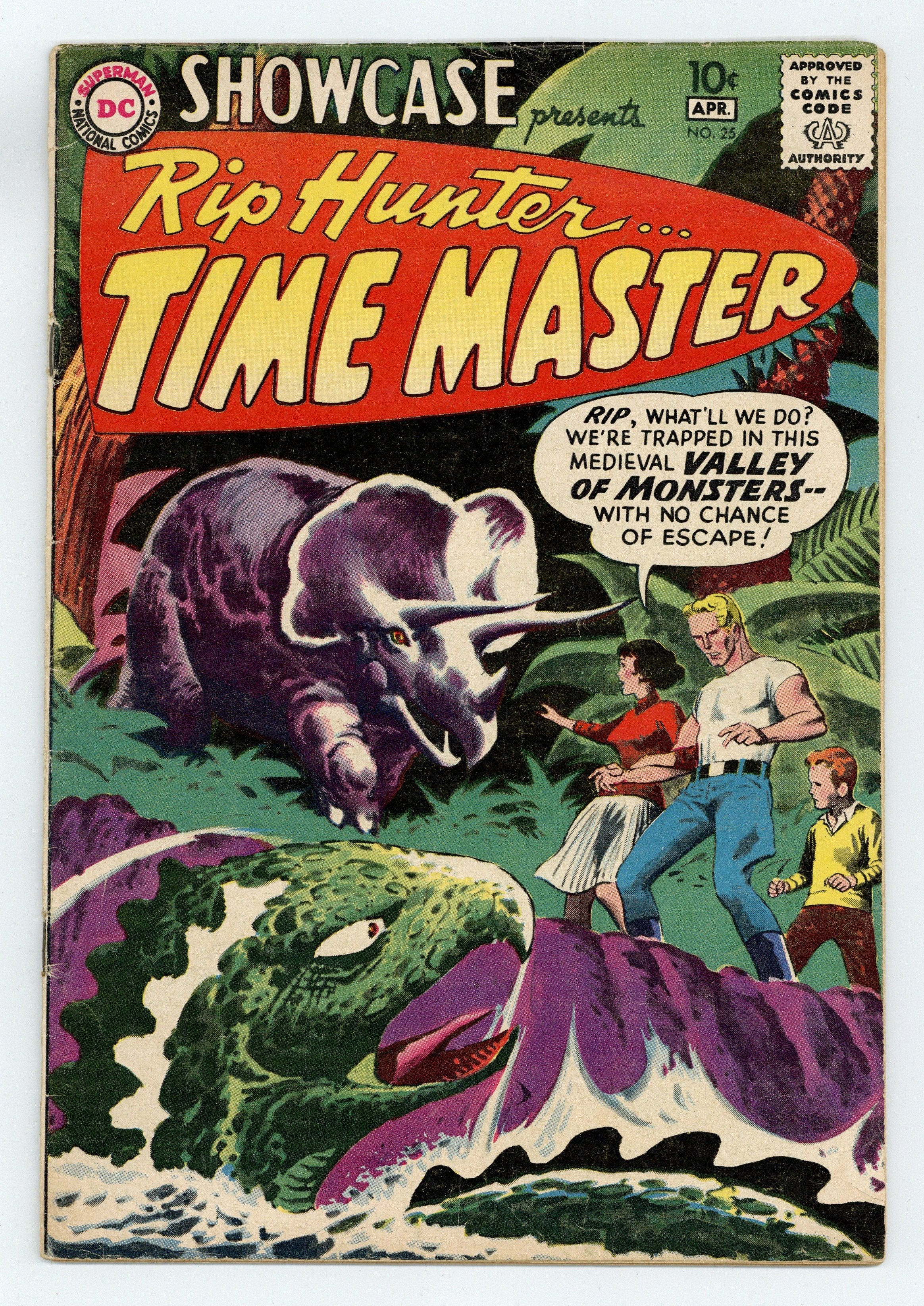 Cover pencils by Joe Kubert, inks by Jack Adler. Captives of the Medieval Sorcerer starring Rip Hunter...Time Master, script by Jack Miller, art by Joe Kubert; As a favor to his friend Professor Blakeslee, Rip agrees to take Doctor Senn into the past; The destination is the island kingdom of Rittannia in the year 960; Upon arrival, Senn takes off on his own; While waiting for his return, Rip and his crew are discovered by King Gamina and his guards; Captured, they are taken to the city and thrown into a dungeon; Out of nowhere, Cholorus the Sorcerer appears to ask why the strangers have not been thrown into the Valley of Monsters. Buzzy's "Famous Books" Quiz public service announcement, script by Jack Schiff, art by Ruben Moreira. Ad for House of Mystery #97, House of Secrets #30, and Tales of the Unexpected #47. From Rocks to Rockets text article. 36 Pages, Full Color. Cover price $0.10.