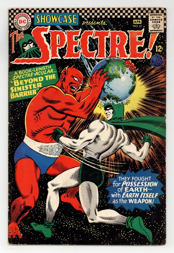 Cover art by Murphy Anderson. Beyond the Sinister Barrier!, script by Gardner Fox, art by Murphy Anderson; The Spectre battles the demonic Shathan the Eternal. Cap's Hobby Hints by Henry Boltinoff. Cloud 9 page of cartoons by Mort Drucker. 36 Pages, Full Color. Cover price $0.12.