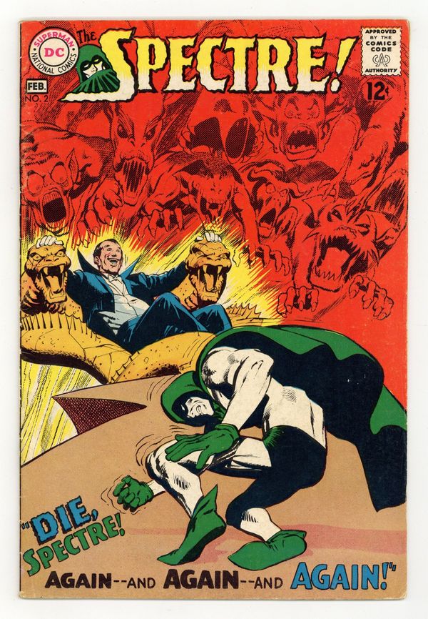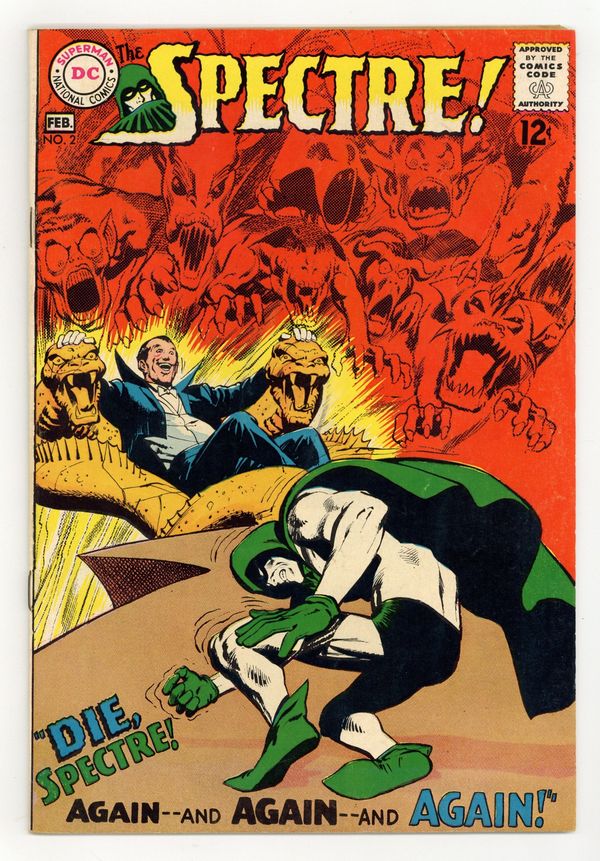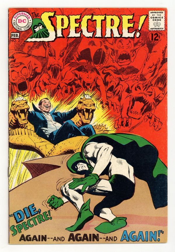 Written by Gardner Fox. Art and cover by Neal Adams. The evil etheric body of magician Dirk Rawley emerges and forces him into crime, spurring the Spectre into action. The Spectre Interviews Neal Adams! article. 36 pages, full color. $0.12. Cover price $0.12.