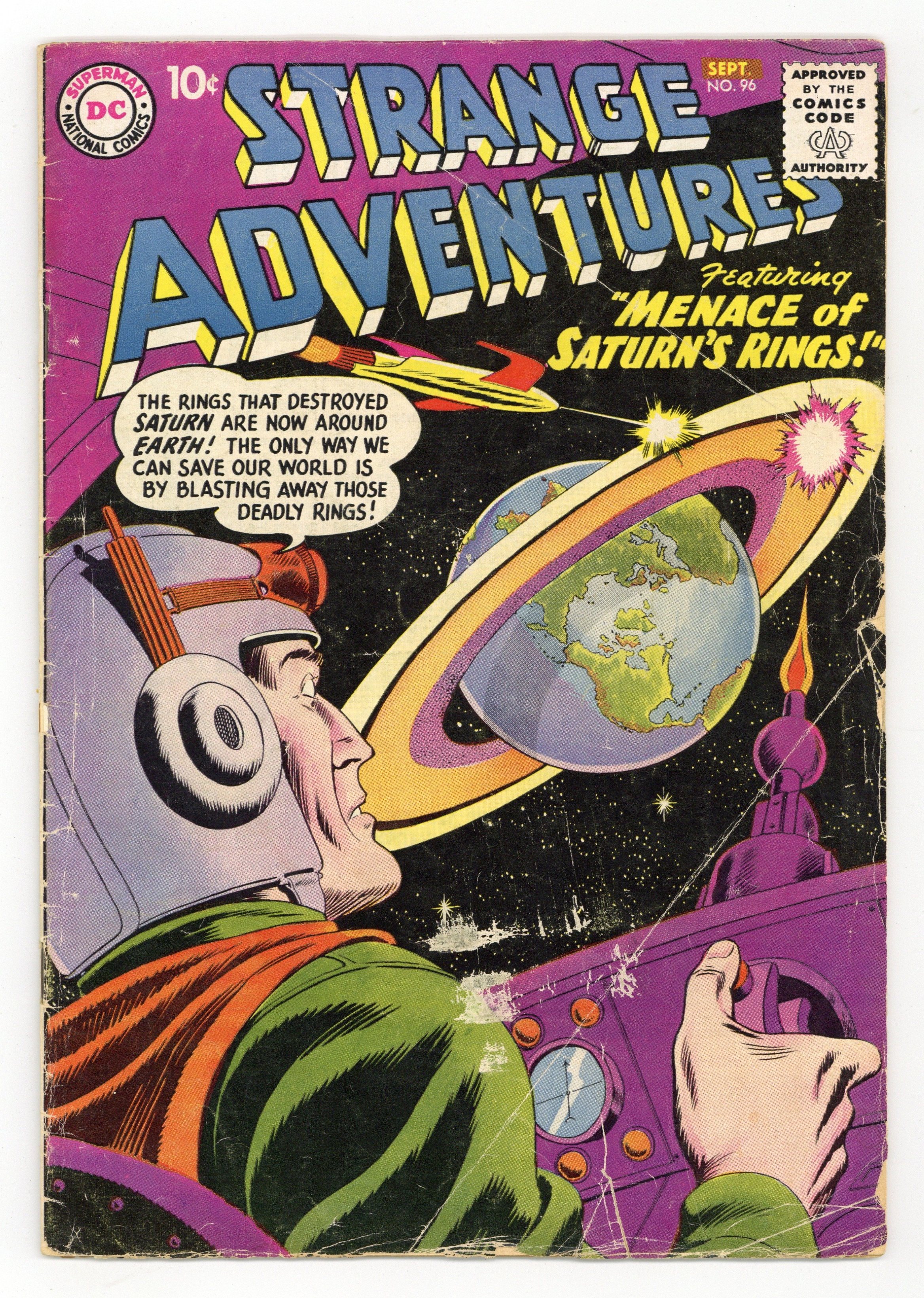 "The Menace of Saturn's Rings" (pencils by Carmine Infantino); "The Man Who Aged Backwards!"; "Trumpet of Wonder"; and "The Day the Earth Vanished!" 36 Pages, Full Color. Cover price $0.10.