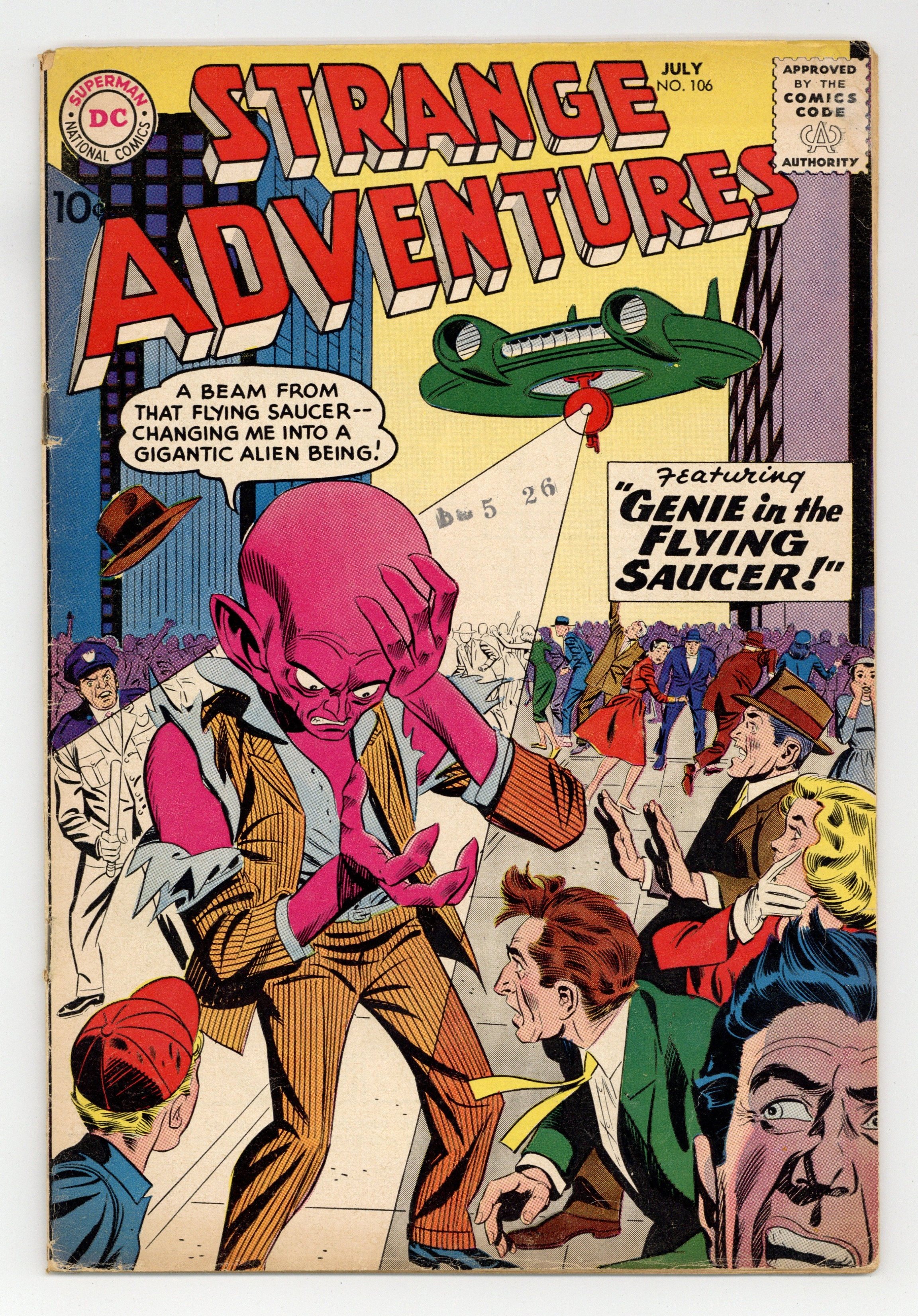 "Genie in the Flying Saucer" (pencils by Gil Kane), "The Secret of the Space-Jewel" (pencils by Carmine Infantino) and "Menace of the Future-Almanac!" 36 Pages, Full Color. Cover price $0.10.