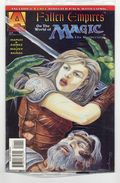Direct Edition. This book comes polybagged with a 8 card pack of MTG: Fallen Empires "Rumors of War" - This 2-part mini-series focuses on the events hinted at in Wizards of the Coast's Fallen Empire cards. All the drama and tragedy caused by the coming ice age will be dramatically told by the editorial team that brought you the hit Shadow Mage and Ice Age Armada series. The story takes place between the Urza/Mishra war set forth in Antiquities and the story now being told in Ice Age. The plot is officially sanctioned by Wizards of the Coast and makes an excellent precursor to the Ice Age mini-series now in progress. Written by Jeff Gomez and Kevin Maples, with art by Alex Maleev and Rodney Ramos. Cover by Anson Maddocks. Cover price $2.75.