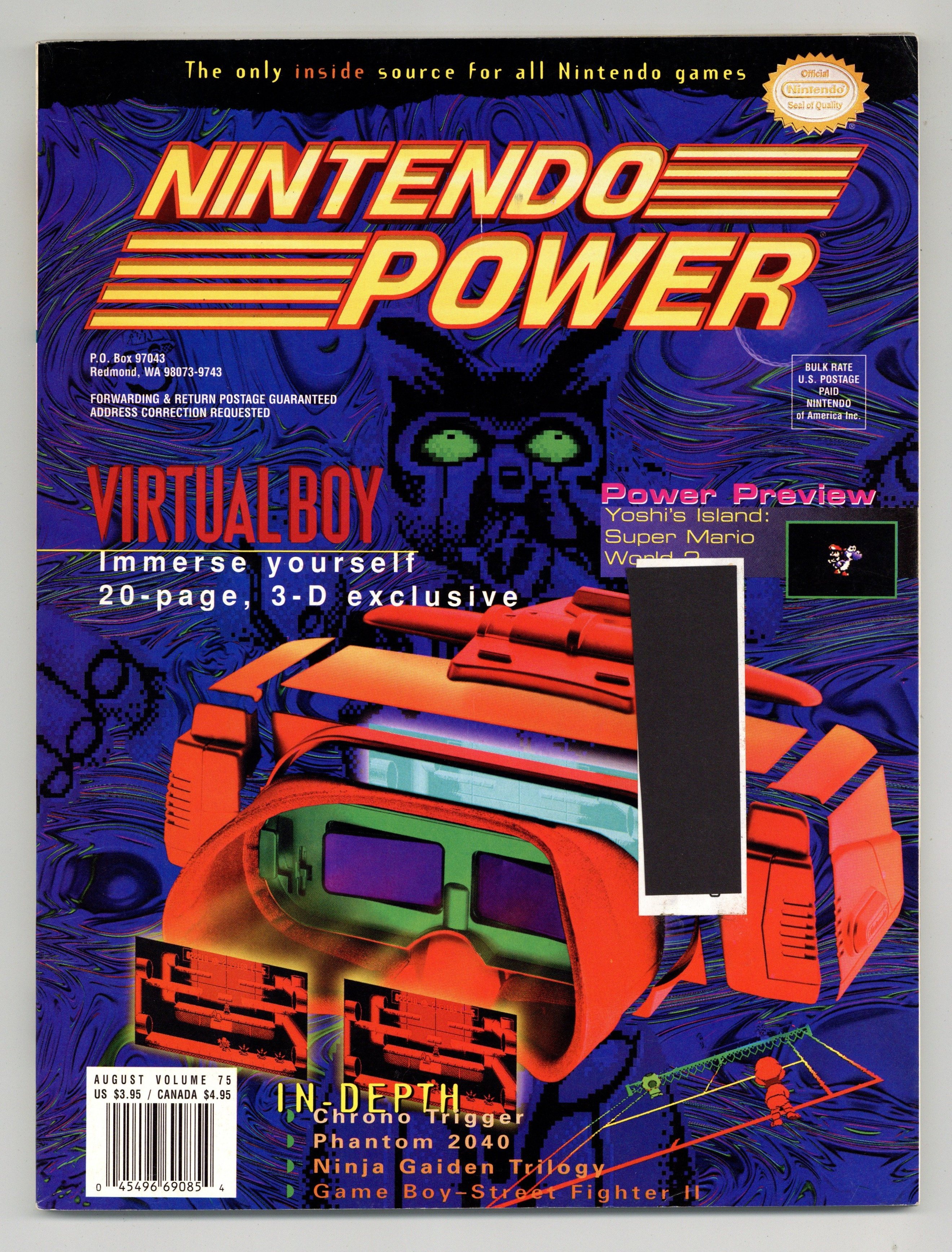Published Aug 1995 by Nintendo of America.$60.00August 1995. The premiere gaming magazine for all things Nintendo. Each issue features game strategies, reviews and news on video games and related pop-culture. Full Color, 8.25" x 10.75". Cover price $3.95.