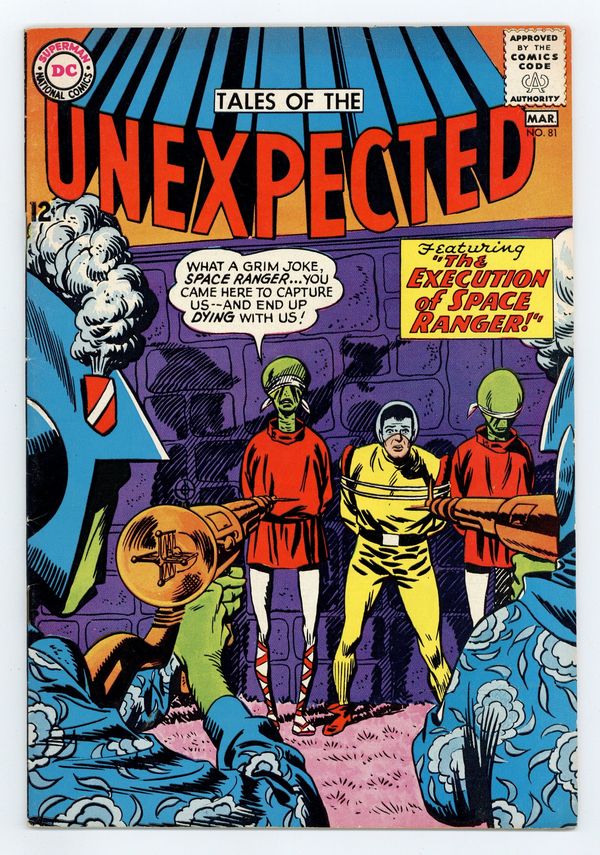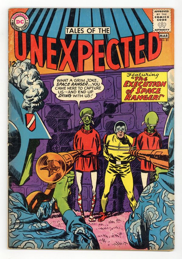 $16.00Cover art by Bob Brown. His Alien Master!, art by Howard Purcell; When an alien saves the life of Frank Scott's wife he demands Frank's help in return; Traveling to the alien planet, Frank learns he now has super-powers, which the alien intends for him to use in helping to overthrow the rightful ruler. House ad for The Brave and the Bold #52, art by Joe Kubert. Earthling -- Go Home, art by George Roussos. On the Planet Og humor page by Henry Boltinoff. The Execution of Space Ranger, script by Arnold Drake, art by Phil Kelsey. 36 Pages, Full Color. Cover price $0.12.