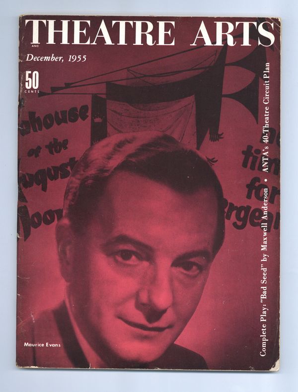Published Dec 1955 by Theatre Arts, Inc..$21.00Volume 39, Issue 12 - December, 1955. Maurice Evans photo cover. Theatre Arts Monthly is legendary for its thorough and insightful coverage of the stage, both in American and England. Less well-known is the fact that TAM also provided some outstanding coverage of motion pictures, Broadway and Hollywood. This "Special French Issue" includes a complete version of "Bad Seed" by Maxwell Anderson, as well as articles by Reginald Denham, Byron Bentley, Maurice Zolotow, Hedy Clark, Alice Griffin, more. 8.5" x 11", 100 pages, B&W. Cover price $0.50.
