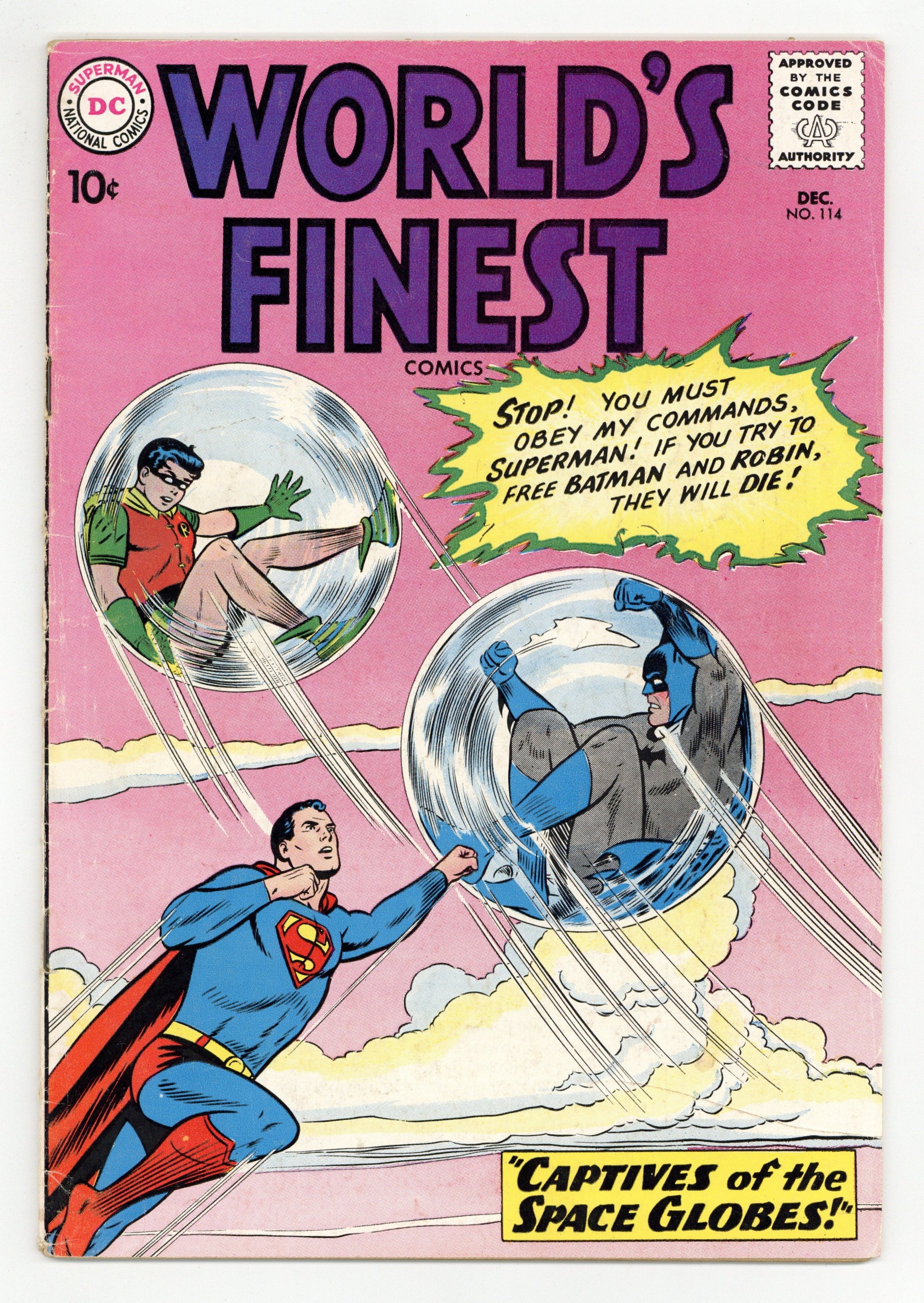 Cover pencils by Curt Swan, inks by Stan Kaye. Captives of the Space Globes starring Superman and Batman, script by Jerry Coleman, pencils by Dick Sprang, inks by Sheldon Moldoff; Alba takes Batman, Robin and Superman to his planet to help rid it of alien invaders. Children of Tomorrow! public service announcement, script by Jack Schiff, art by Bernard Baily; Article relates how sub-standard conditions affect children in the world and quotes the "UN Declaration Of The Rights Of A Child." The Human Space Dragon starring Tommy Tomorrow, script by Jack Miller, art by Jim Mooney. Green Arrow's Alien Ally, script by Ed Herron, art by Lee Elias; Green Arrow helps a pixie sized cop from another world capture a (too him) giant criminal. 36 Pages, Full Color. Cover price $0.10.