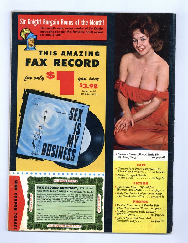 June 1962. Men's magazine with fiction, cartoons and pictorials. 8-in. x 10 3/4-in., 66 pages, B&W and partial color. Mature readers. Cover price $0.50.