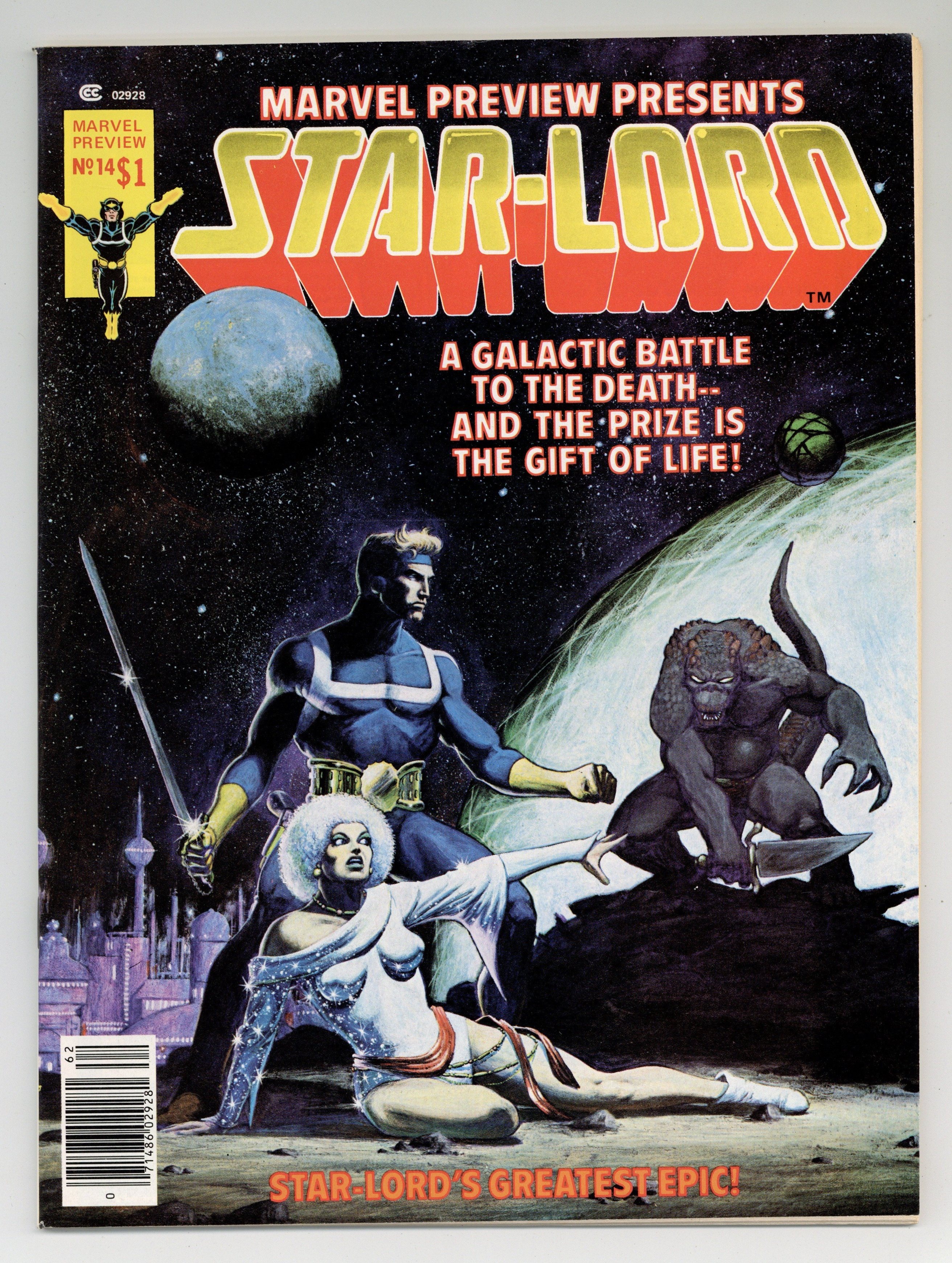 $13.50Cover art by Jim Starlin; Star-Lord article by Richard E. Marschall; A Trilateral Commission article by Trilateral; Sandsong Star-Lord story by Chris Claremont, pencils by Carmine Infantino, inks by Bob Wiacek; Logos Star-Lord story by Claremont, pencils by Infantino, inks by Wiacek; Three Kinds of Fannish Encounters article by Don and Maggie Thompson; Starworld Cyndriana story by David Anthony Kraft, art by Bob Wakelin; Detour story by Richard E. Marshall, art by Alfred Alcala; and Weirdworld promo ad penciled by John Buscema. 68 pgs. Cover price $1.00.