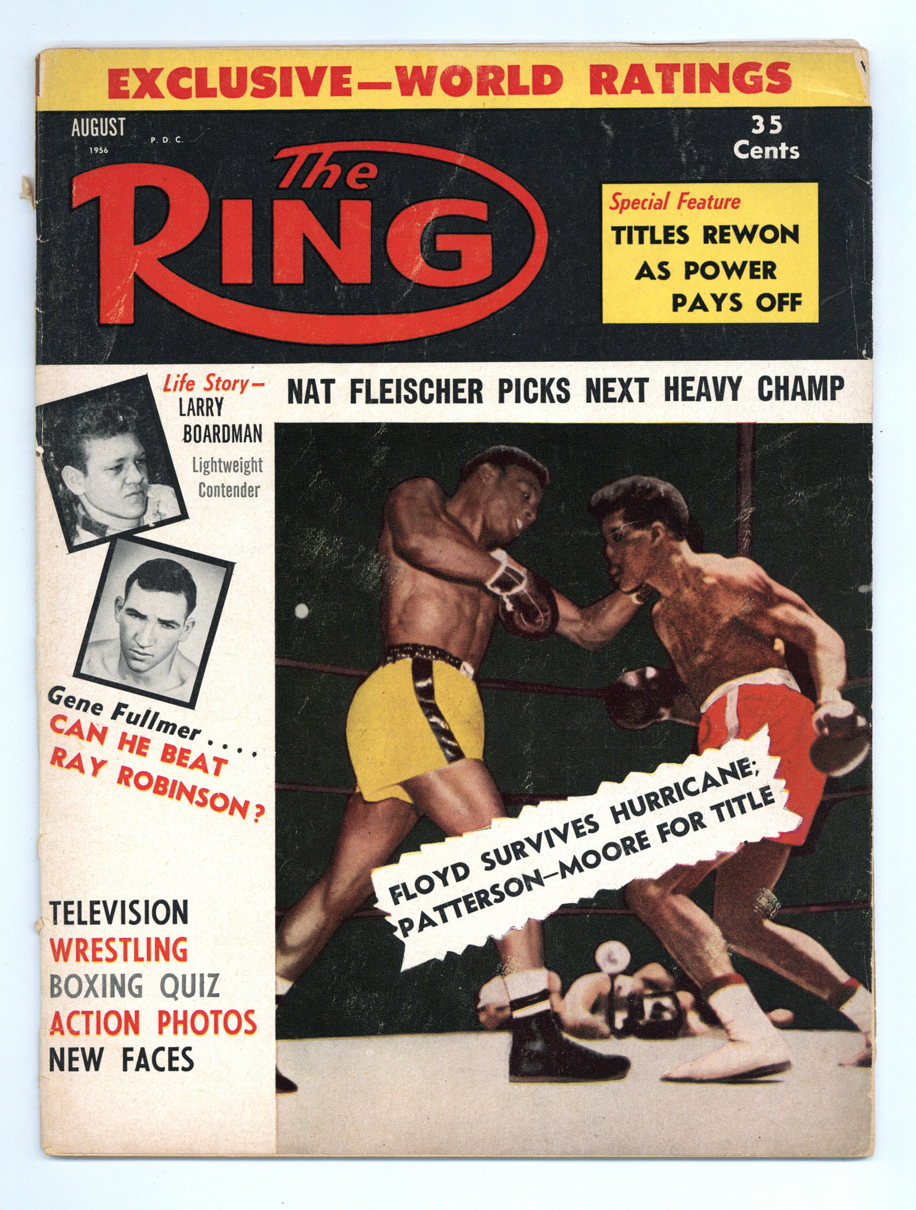 Vol. 35 #7 - Aug. 1956. Boxing magazine. Features articles, departments, ratings, fight reports around the world and more. 8 1/4-in. x 10 3/4-in., 66 pages, B&W. Cover price $0.35.