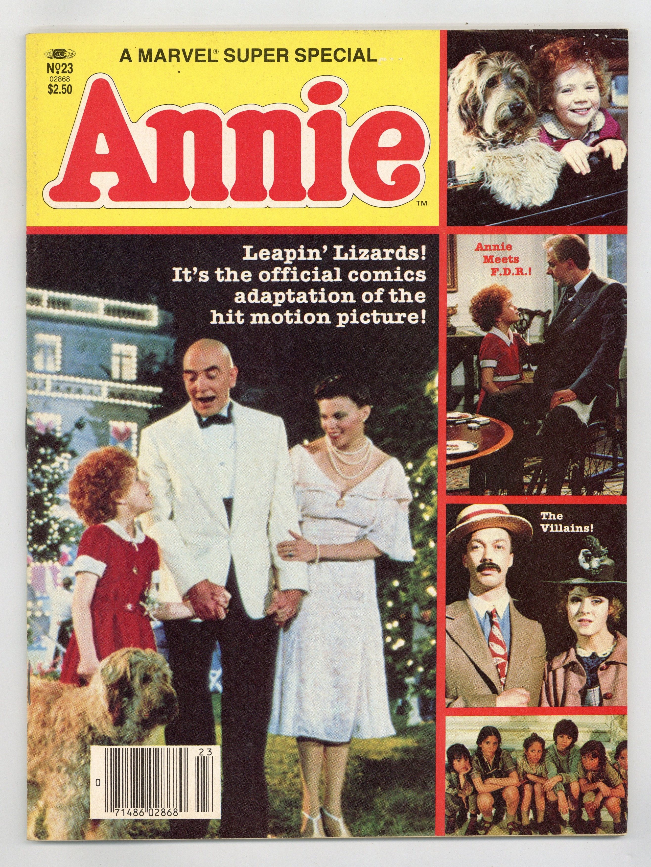 $10.99Annie. The official comic book adaptation of the film based on the Broadway musical, which in turn was based on the Little Orphan Annie comic strip. Written by Tom DeFalco, with art by Win Mortimer and Vince Colletta. Story later reprinted in Annie #1-2. Includes movie stills and biographical material. An interview with Leonard Starr, who revived the comic strip, may be the biggest draw for Orphan Annie fans. Full color; 68 pages. Cover price $2.50.
