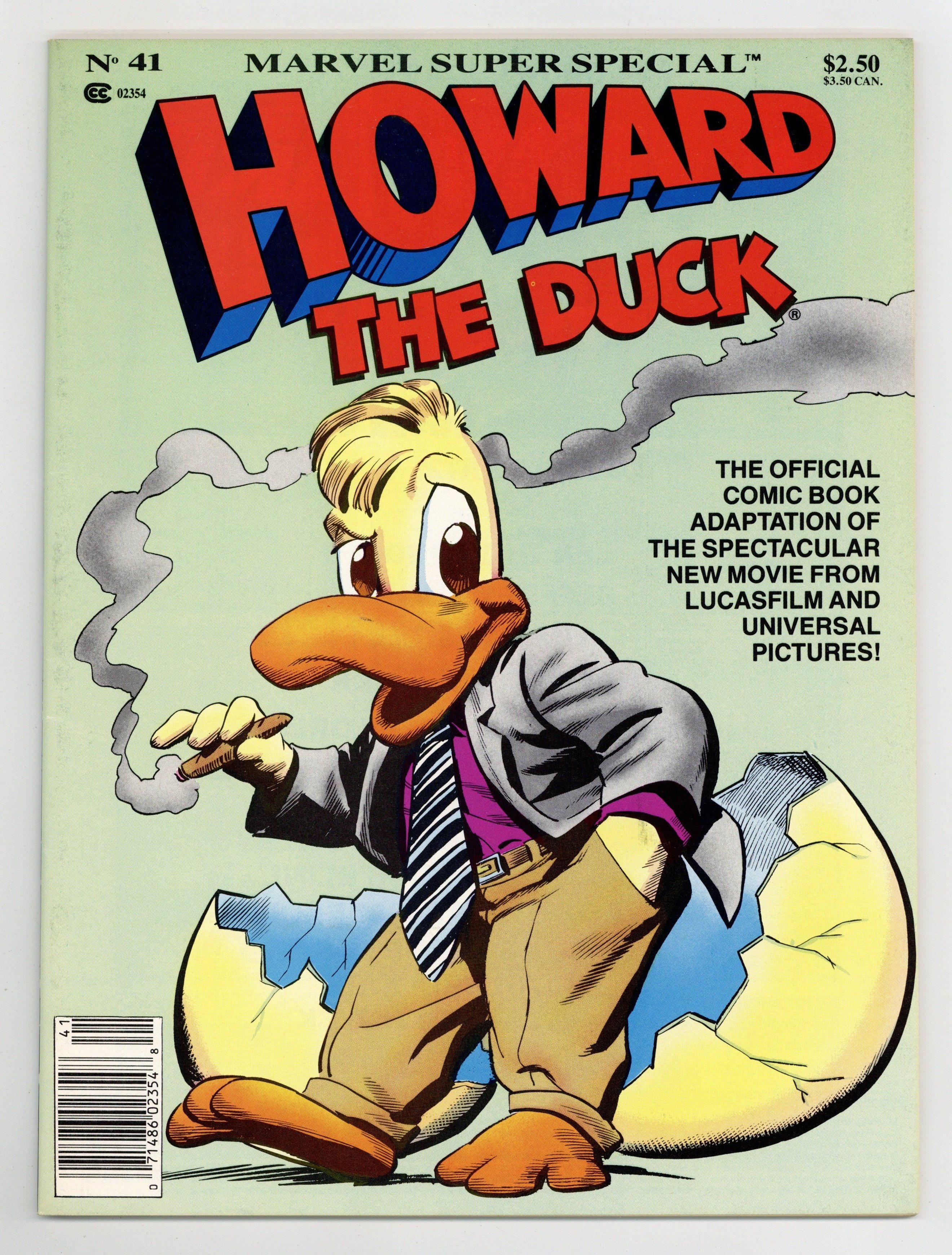 $36.00Howard the Duck. The official comic book adaptation of the movie that was based in turn on the Steve Gerber comic character. Gerber was not involved in this adaptation. Fittingly, after two full years of adapting box-office flops to comics, the Marvel Super Special series concludes its run with one of the biggest flops of all time. Written by Danny Fingeroth, with art by Kyle Baker, of all people. Story later reprinted in Howard the Duck (1986) #1-3. Full color; 68 pages. Cover price $2.50.