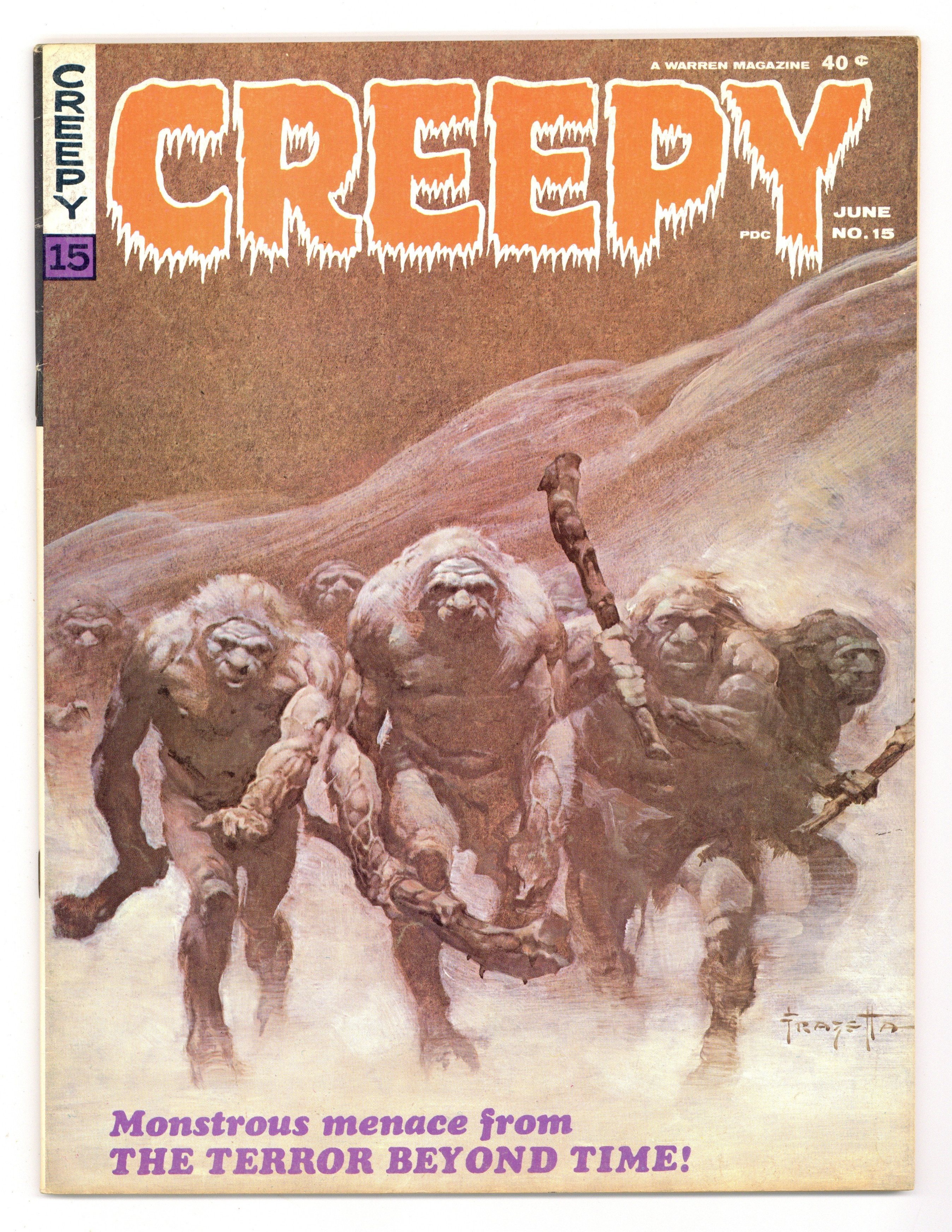 $19.00Stories in this issue include: Thane: City of Doom by Steve Ditko and Archie Goodwin; Adam Link, Champion Athlete by Joe Orlando and Otto Binder; The Adventure of the German Student by Jerry Grandenetti and Archie Goodwin (from the story by Washington Irving); The River by Johnny Craig; and The Terror Beyond Time by Neal Adams and Archie Goodwin. Also includes Creepy Fan Club information. Cover art by Frank Frazetta. Cover price $0.40.