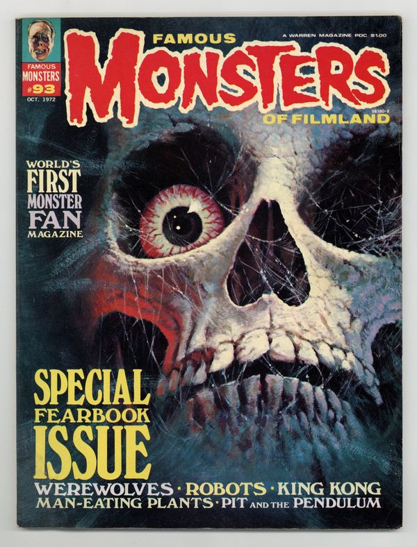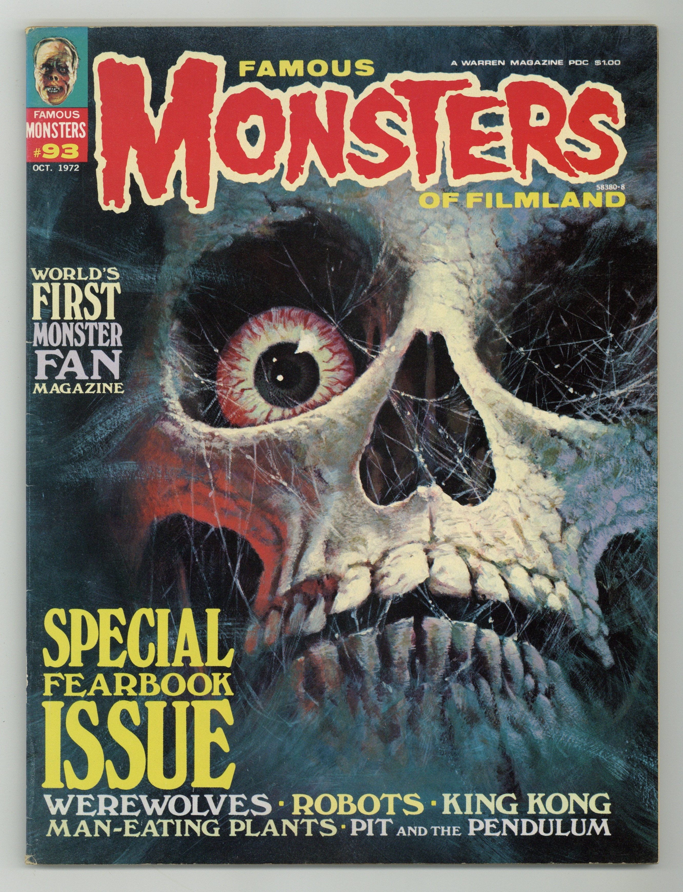 $61.00This issue has lots of reprinted articles, including "Inside Darkest Acula, I was a Teenage Frankenstein," "Terrors of the Man Eating Plants," "Monster Kicks on Route 66," "The Beasts of Tarzan," and "King Kong is Comic Back." Fortunately, there's also some original material, including "Famous Monsters Salutes Sir Cedric Hardwick" and "These Were Their Lives" by Peter Wang and Spencer Strong. Painted by Luis Dominguez, the excellent cover art is a skull from Tales from the Crypt. Cover price $1.00.