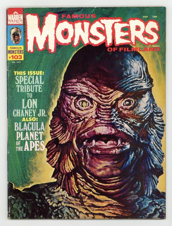 Features in this issue include: interview with Blacula's William Marshall; obituaries for Lon Chaney Jr., Veronica Lake, Arthur P. Jacobs, and others; article on the late great Lon Chaney Jr., including an open letter to fans from his widow; "Professor Gruebeard"; and more. Basil Gogos painted the beautiful Creature from the Black Lagoon cover. Cover price $0.75.