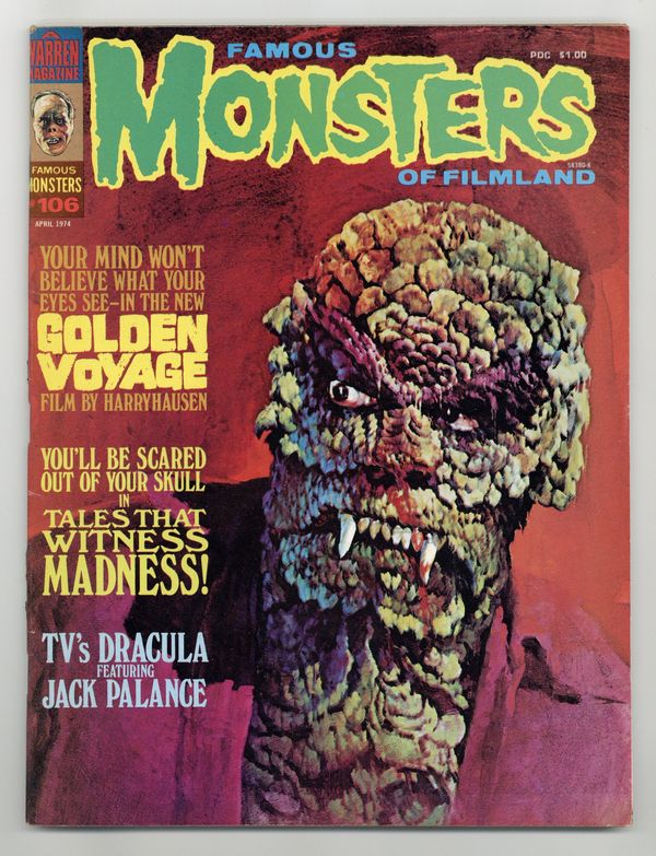 Features in this issue include: "Fang Mail" (including a letter by publisher James Warren regarding FM's higher newsstand price); article on Jack Palance version Dracula; Vampire Circus filmbook; "The Living Ghost" (in which Forry writes about his premature John Agar obituary); "Professor Gruebeard"; and more. Cover painting by Basil Gogos is of the creature from The Hideous Sun Demon. Cover price $1.00.