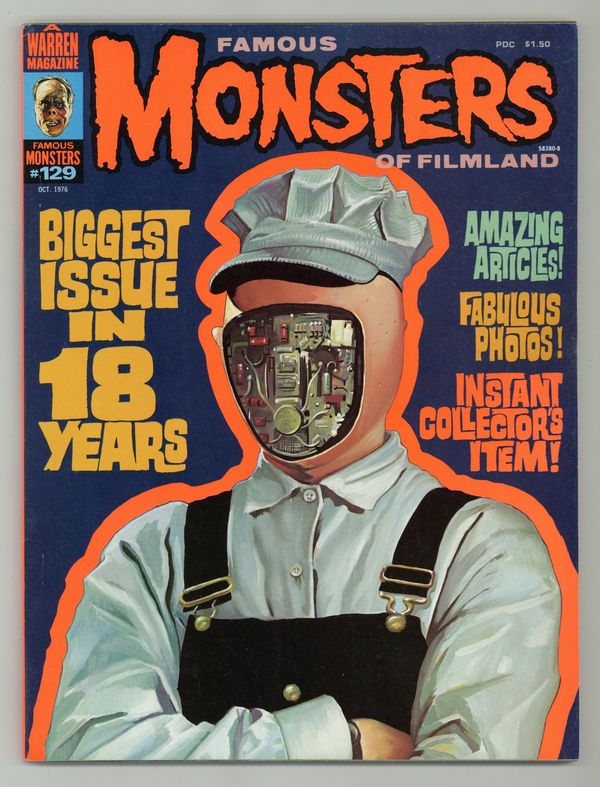 Features in this issue include: previews of The Green Slime, At the Earth's Core, and Futureworld; reprint of Lugosi in England article; Dr. Who article; and more. Cover painting of Futureworld android sans faceplate is by Ken Kelly. Cover price $1.50.