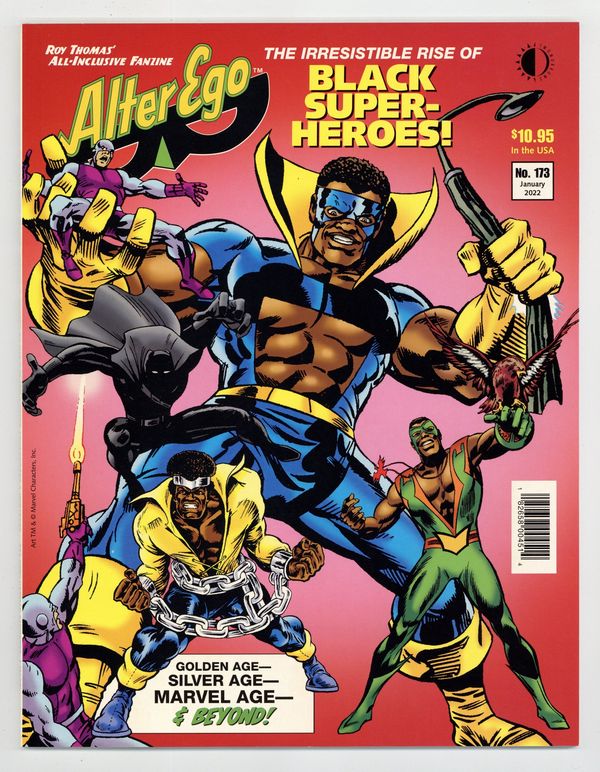 Published Jan 2022 by TwoMorrows.$10.00Black super-heroes (and others) in U.S. comicbooks! An awesome overview by comics historian Barry Pearl-from Voodah to Black Panther and beyond! Plus-an in-depth interview with Dr. William Foster III, author of Looking for a Face Like Mine! Showcasing Baker, Graham, McDuffie, Fitzgerald, Hollingsworth, Cowan, Greene, Herriman, Jones, Ormes, Stelfreeze, Barreaux, Stoner, et al.-plus FCA, Michael T. Gilbert, and more! Cover by Kirby, Graham, Tuska, and Colan! Edited by Roy Thomas. 80 pages, full color. Cover price $9.95.