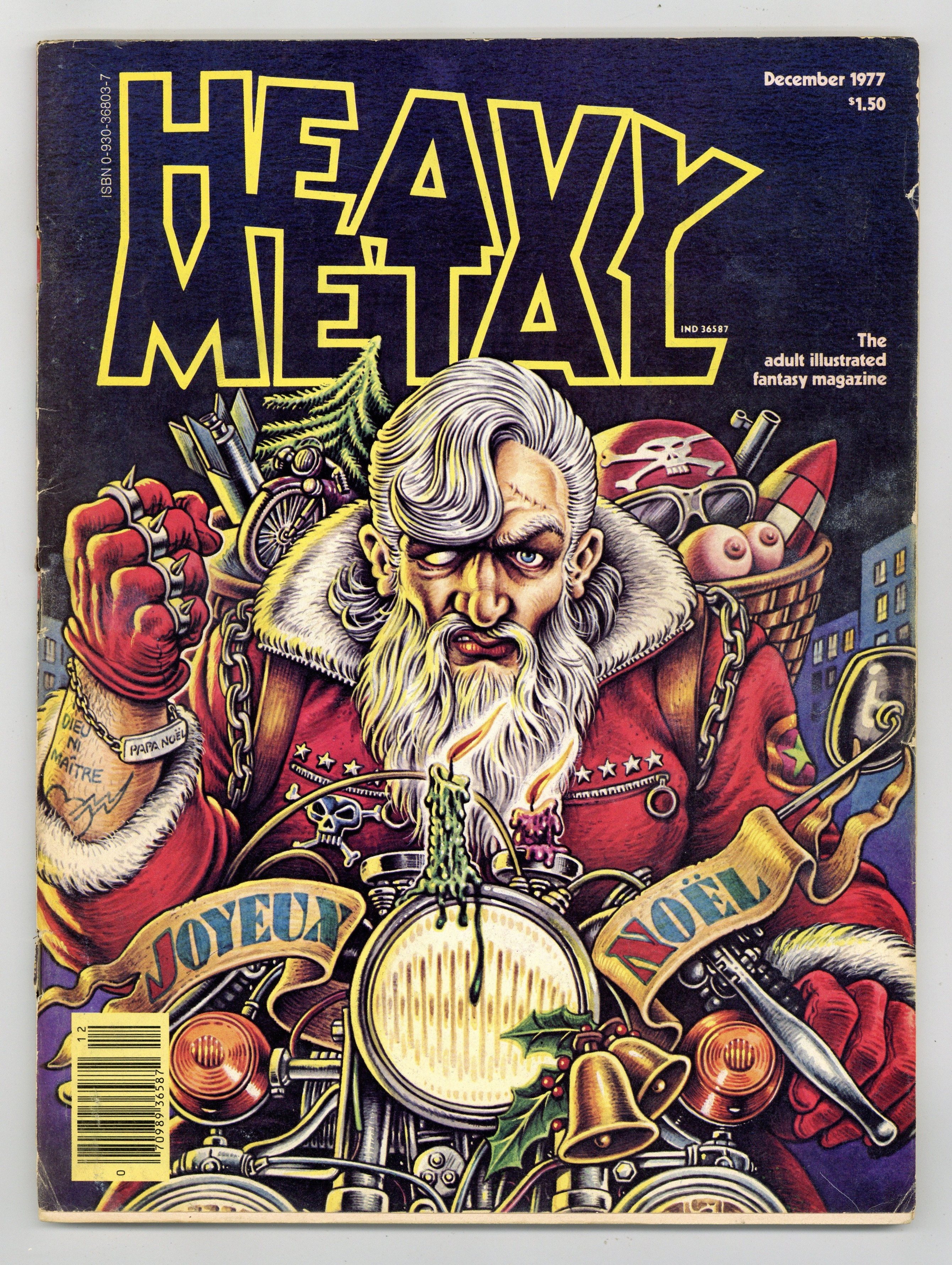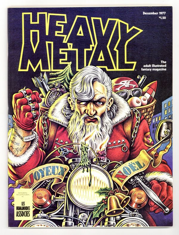 The adult illustrated fantasy magazine. Cover art by Jean Sole. Untitled Den story, script and art by Richard Corben. Untitled Vuzz story, script and art by Philippe Druillet. Telefield, script and art by Sergio Macedo. Fortune's Fool!, script by Len Wein, art by Howard Chaykin. The Mauve Sideshow, script by Elisabeth Salomon [as Zha], art by Nicole Claveloux. Black Thursday, script and art by Jean Giraud [as Moebius]. One-page illustration by Howard Chaykin. Dec, 1977, issue 9. 180 pgs. Cover price $1.50. Cover price $1.50.