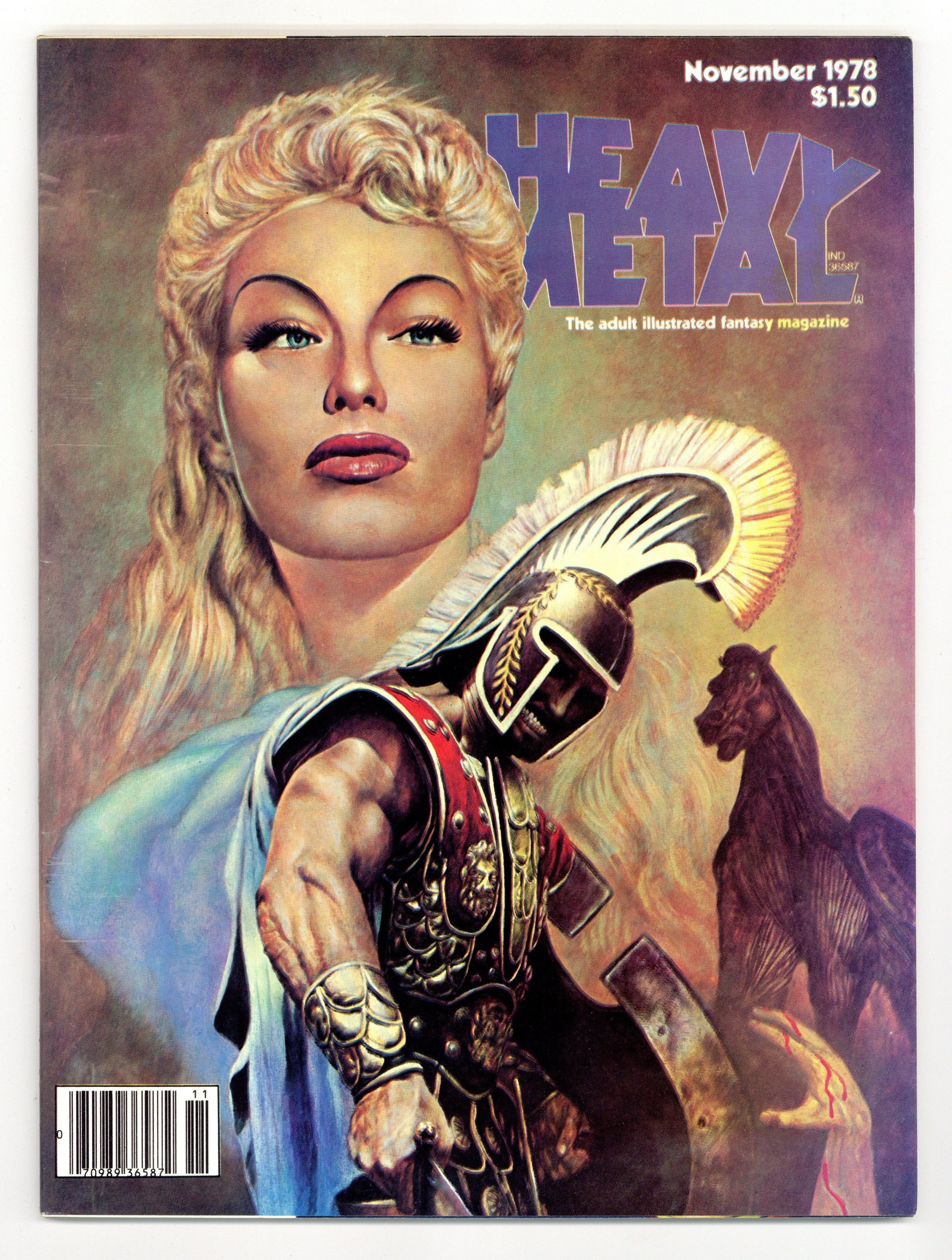 Published Nov 1978 by HM Communications.$16.50Peter A. Jones cover, Rich Corben, Howard Chaykin, and 2 pages Moebius art November 1978, issue 20. Dubbed "The adult illustrated fantasy magazine," Heavy Metal also publishes tales of horror, science fiction, and adventure. This 20th issue includes the following stories: The New Tales of the Arabian Nights, Sinbad in the Land of Jinn by Richard Corben and Jan Strnad; Exterminator by Bilal; Orion by Gray Morrow; The Great Trap by Sire; Gail by Druillet; The Garage by Moebius; Galactic Geographic by Kofoed; Off-Season by Zha and Claveloux; Empire by Samuel Delany and Howard Chaykin; Surgical Tactics by Bissette; Helman by Voss; and So Beautiful So Dangerous by Angus McKie. Cover art by Marcus Boas. Cover price $1.50.