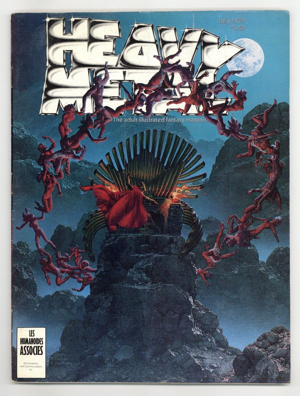 Published Jul 1979 by HM Communications.$22.00The adult illustrated fantasy magazine. Cover art by Richard Corben and Rick Courtney. The Last Voyage of Sinbad--New Tales of the Arabian Nights, script by Jan Strnad, art by Richard Corben. The Great Trap, script and art by Denis Sire. The Airtight Garage of Jerry Cornelius, script and art by Jean Giraud [as Moebius]. Stingaree featuring Eight Belles, script and art by Gray Morrow. Citizens Beware, script and art by Mark Fisher. ...Rears Its Ugly Green Head, script by Neal Adams, art by Michael Hinge. Zooks!, script and art by Vaughn Bode. Ecch! The Young Gnome text story, script by Nicholas V. Yermakov, art by Roger Stine. Shelter, script and art by Chantal Montellier. Telefield Chapter Five, script and art by Sergio Macedo. Attila the Frog, script and art by Don Lomax. Down Deep, script and art by Stuart Nezin. Starcrown text story, script by John Pocsik, art by Gil Kane and Bruce Jones Studio. Only Connect - Multiple Choice, script and art by Alias. July, 1979, issue 28. 100 pgs. Cover price $1.50. Cover price $1.50.