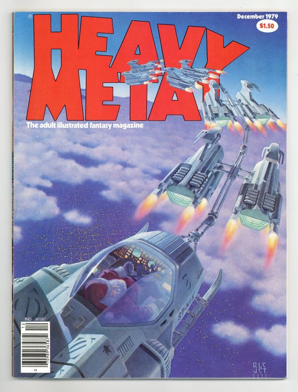 The adult illustrated fantasy magazine. Cover art by Richard Lon Cohen and John Townley. Welcome to Cityville 2--Suburban Scenes, script and art by Philippe Cazaumayou [as Caza]. After the Fall, script and art by Serge Clerc. Santa Claus vs. S.P.I.D.E.R. text story by Harlan Ellison, art by Gahan Wilson. The Story of Rowlf, script and art by Richard Corben. Fomalhaut, script and art by Montxo Algora. Pau Pele Pau Mano, script and art by Trina Robbins. A Tale of Christmas, script and art by Jean Giraud [as Moebius]. Christmas Carol, script and art by Arthur Suydam. December 24th, 11:55 p.m., script by Phil Manoeuvre, art by Al Voss. Dec, 1979, issue 33. 100 pgs. Cover price $1.50. Cover price $1.50.