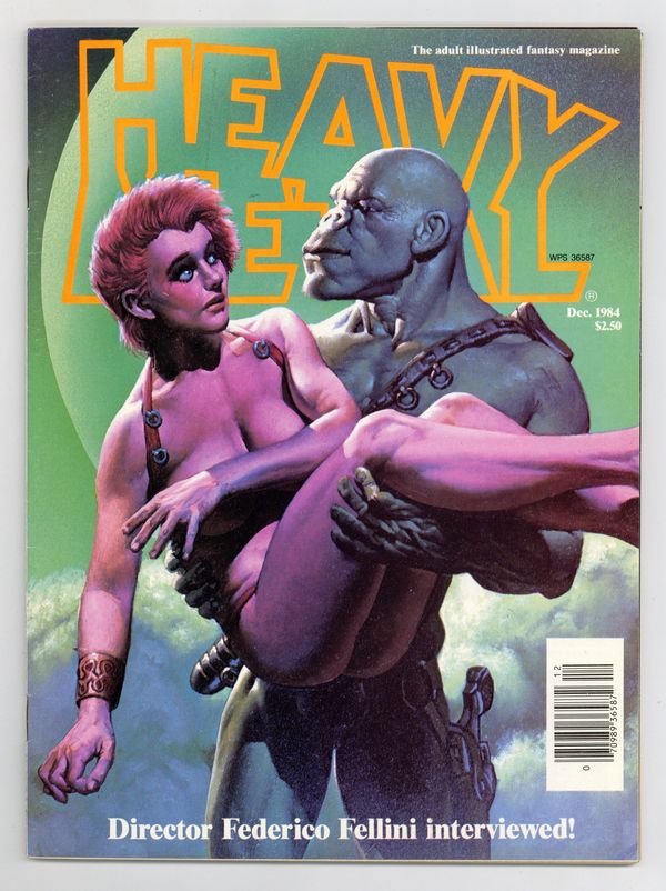 Published Dec 1984 by HM Communications.$19.25The adult illustrated fantasy magazine. Cover art by Richard Corben. Wordpeckar article by Mike Barson, art by Harvey Pekar. Triton, script and art by Daniel Torres. The Walls of Samaris, script by Benoit Peeters, art by Francois Schuiten. Federico Fellini interview. An Author in Search of Six Characters, script and art by Milo Manara. The Hunting Party, script by Pierre Christin, art by Enki Bilal. Enslaved by the Needle, script and art by Joost Swarte. Enchantment text story, script by Doris Vallejo, art by Boris Vallejo. Meets the Toast of Europe starring Tex Arcana, script and art by John Findley. Rock Opera, script and art by Rod Kierkegaard, Jr. Dec, 1984, issue 93. 100 pgs. Cover price $2.50. Cover price $2.50.