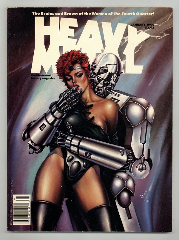 Published Jan 1990 by HM Communications.$13.00Ovi Hondru cover, January 1990, issue 124. Dubbed "The adult illustrated fantasy magazine," Heavy Metal also publishes tales of horror, science fiction, and adventure. This includes the following stories: The Fourth Quarter by Juan Gimenez; Linen's Lipstick by Miguel Angel Prado; 1881 by Rick Geary; Return to Sea by Laurent Theureau and Patrick Galliano; and The New Frontier by John Sablic and Michael Cherkas. Cover price $3.95.