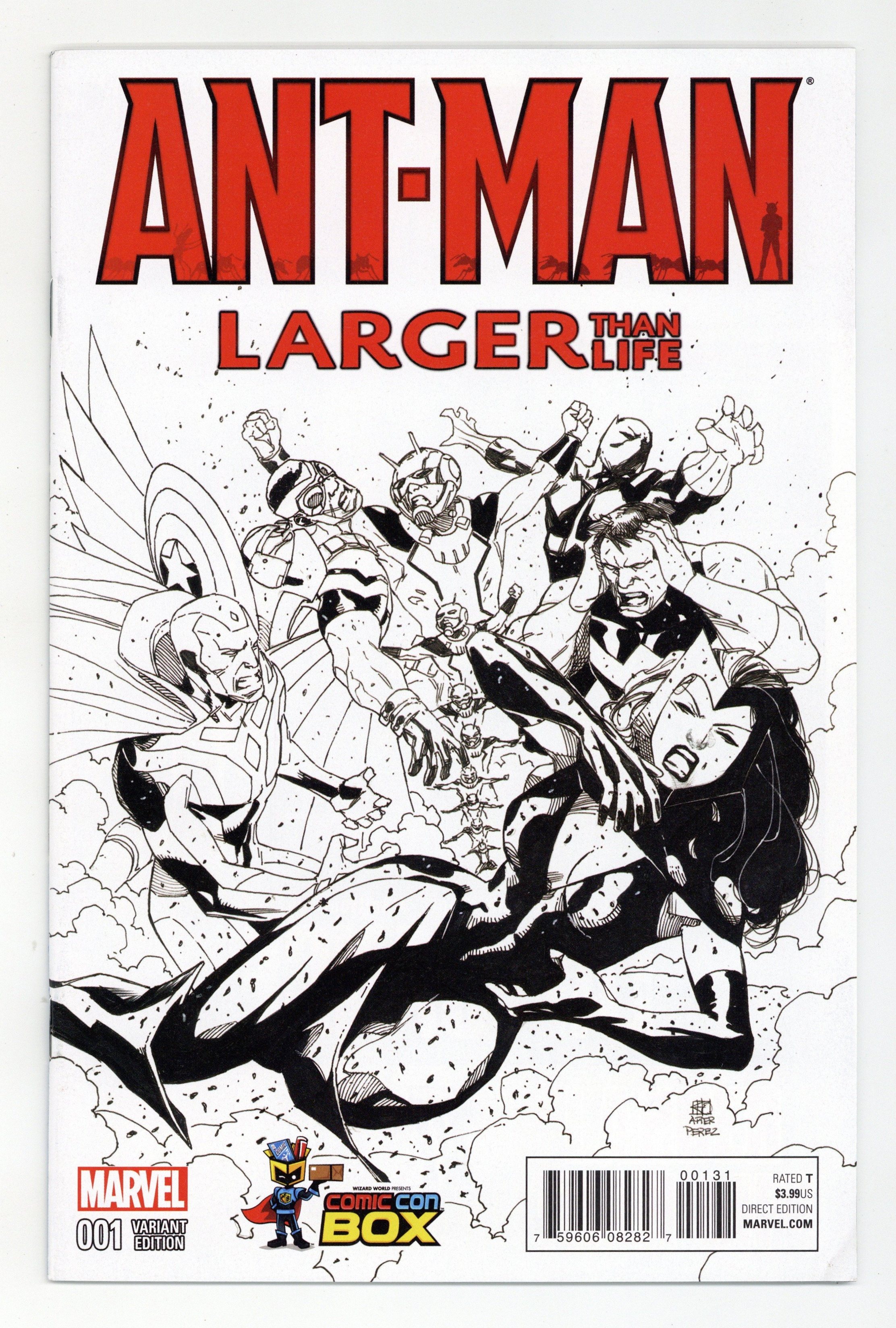 Tags: Avengers$2.65Comic Con Box B&W variant cover by Khoi Pham. Written by Will Pilgrim. Art by Andrea DiVito. Cover by Jeun-Siik Ahn. Join Hank Pym, a.k.a. ANT-MAN, as he learns that a little experiment can land him in BIG trouble! Can Ant-Man tame something as painfully formidable as the Bullet Ant before it's too late?! Find out! PLUS: Reprinting Tales to Astonish #27 (the first appearance of Hank Pym) and Tales to Astonish #35 (the first of appearance of Ant-Man in costume)! 44 pages, full color. Rated T Cover price $3.99.
