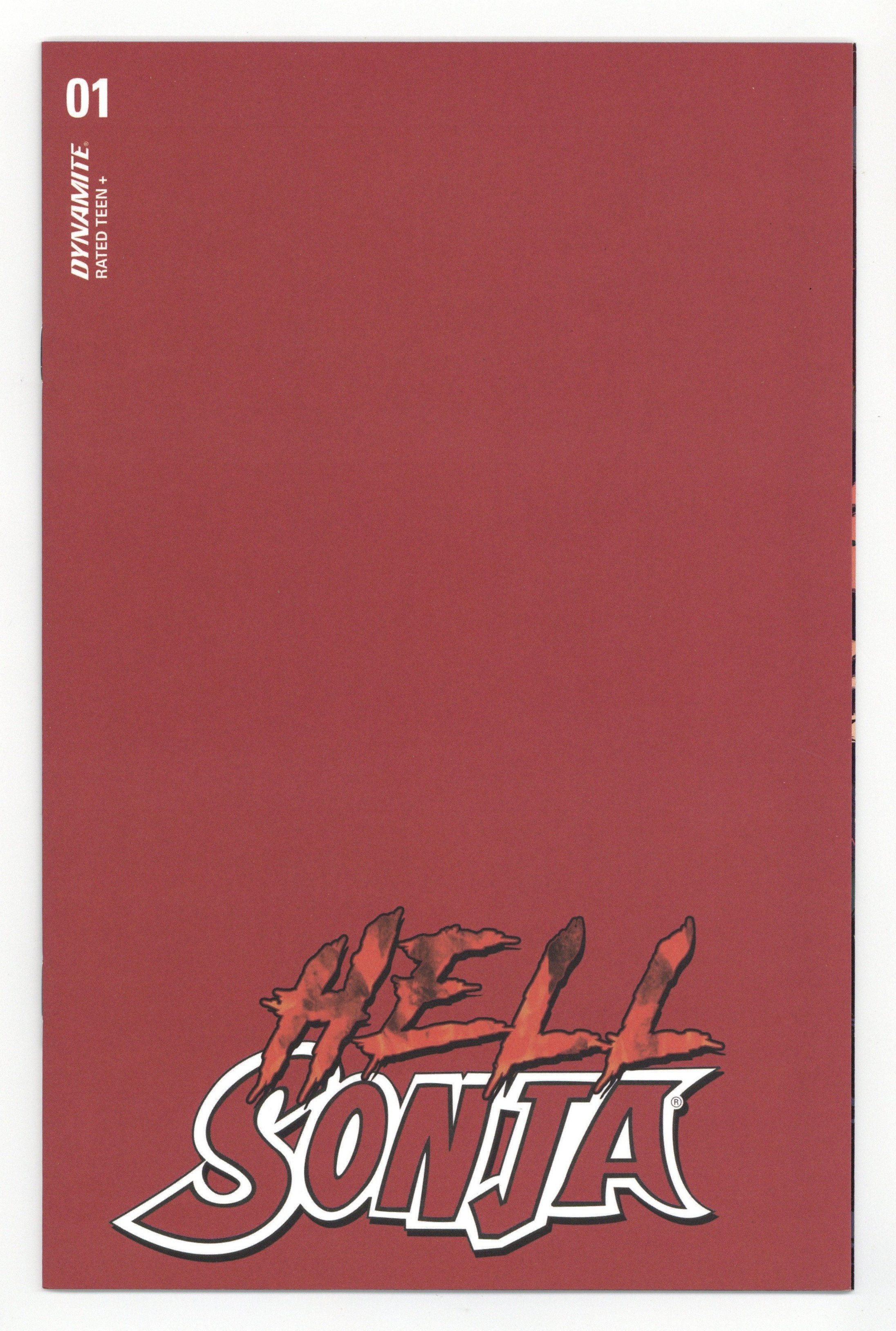 Published Jan 2022 by Dynamite Entertainment.$5.20Blank Cover. Written by Christopher Hastings. Art by Pasquale Qualano. 'Welcome to HELL…SONJA. She's the Queen of Damnation. She lords over the fiery pit of eternal hunger and suffering. But now, she's had enough of this evil s**t. She will bind together lost souls, and rove the multiverse to fill Hell's belly with only the most deserving of its punishment. If someone so wicked is beset upon you, if you're desperate enough, if no one else can help, maybe your prayer will be heard by…HELL SONJA. By CHRISTOPHER HASTINGS (Deadpool, Gwenpool) and PASQUALE QUALANO (Sonjaversal)!' 32 pages, full color. Rated T Cover price $3.99.