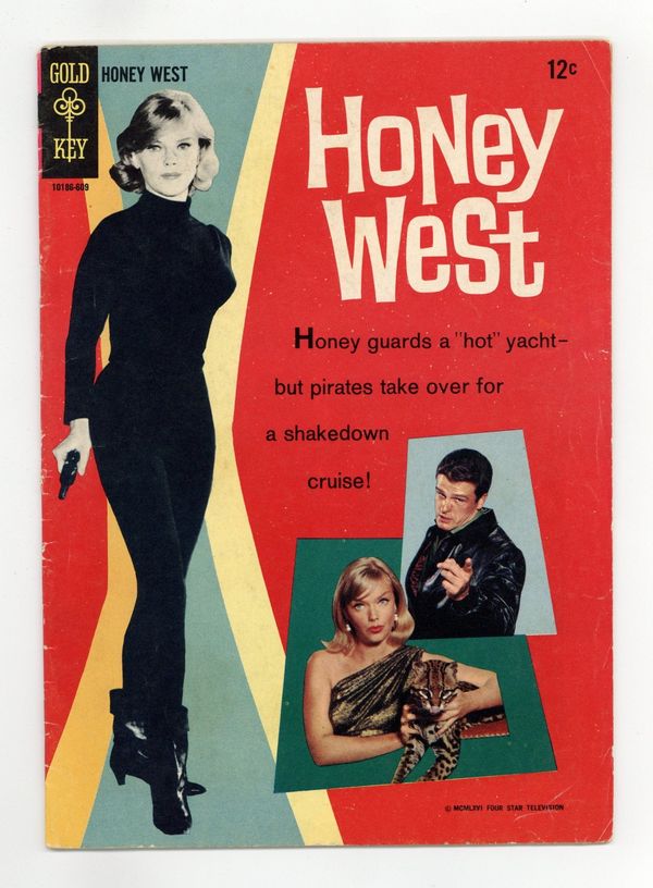 Anne Francis/John Ericson photo cover. Adventures based on the TV series. "The Underwater Raiders," script by Paul S. Newman, art by Jack Sparling; Honey is hired to guard the jewelry at a party on a yacht, but thieves in frogman gear steal the model of an innovative new bomber instead; With help from Sam, Honey tracks them down and exposes the yacht owner as a spy trying to steal defense secrets. "The Fall Guy," script by Paul S. Newman, art by Jack Sparling; Honey investigates why gangsters are forcing Acey to throw his wrestling matches. She finds the ringleader and exposes him, leaving Acey free to win. Photos on front, back and inside covers. # on cover 10186-609. No month listed. 36 pgs., full color. Cover price $0.12.
