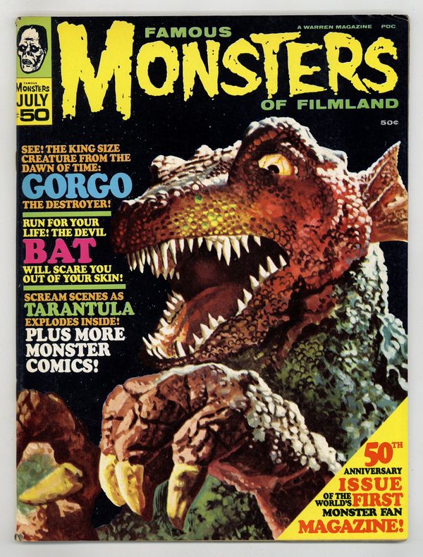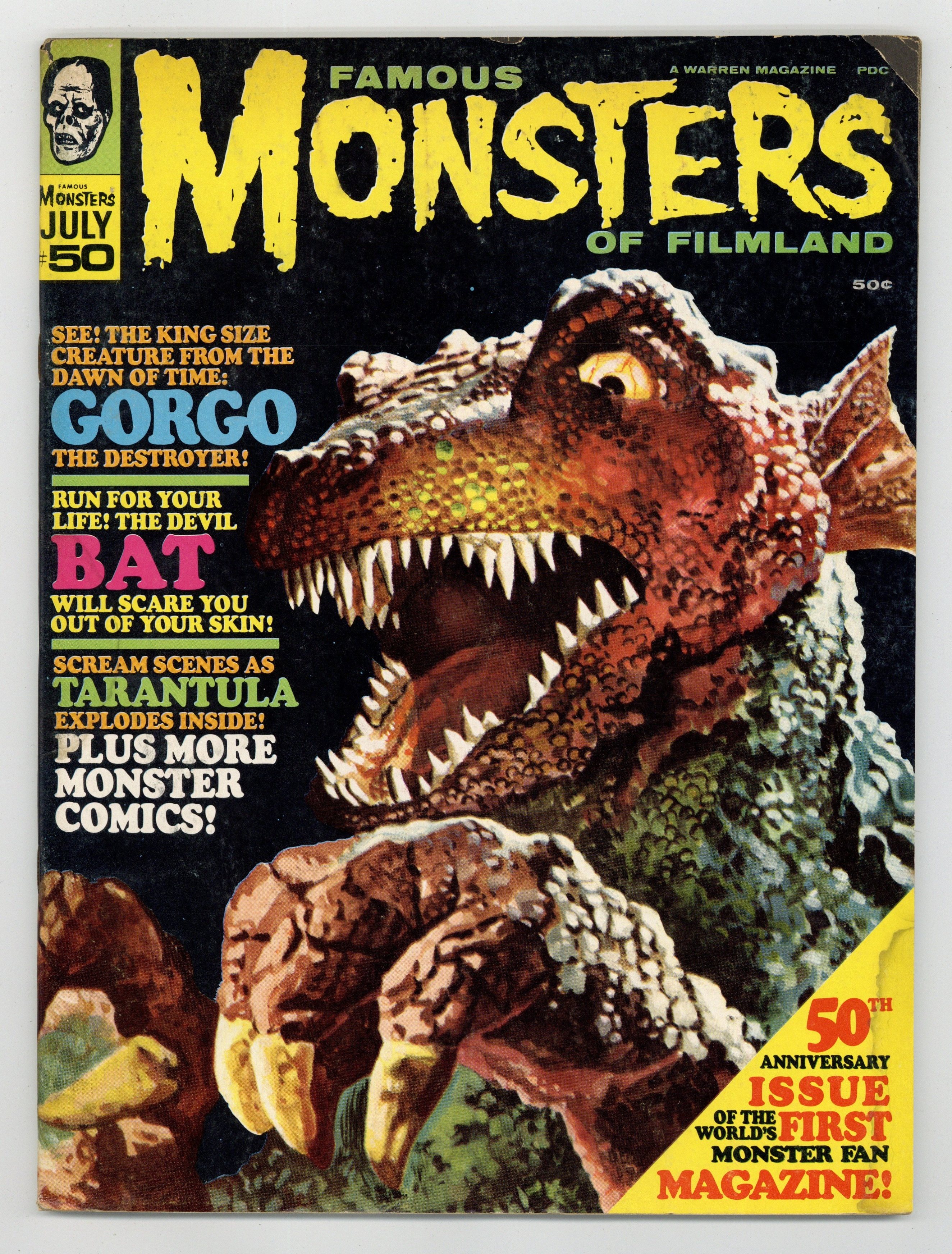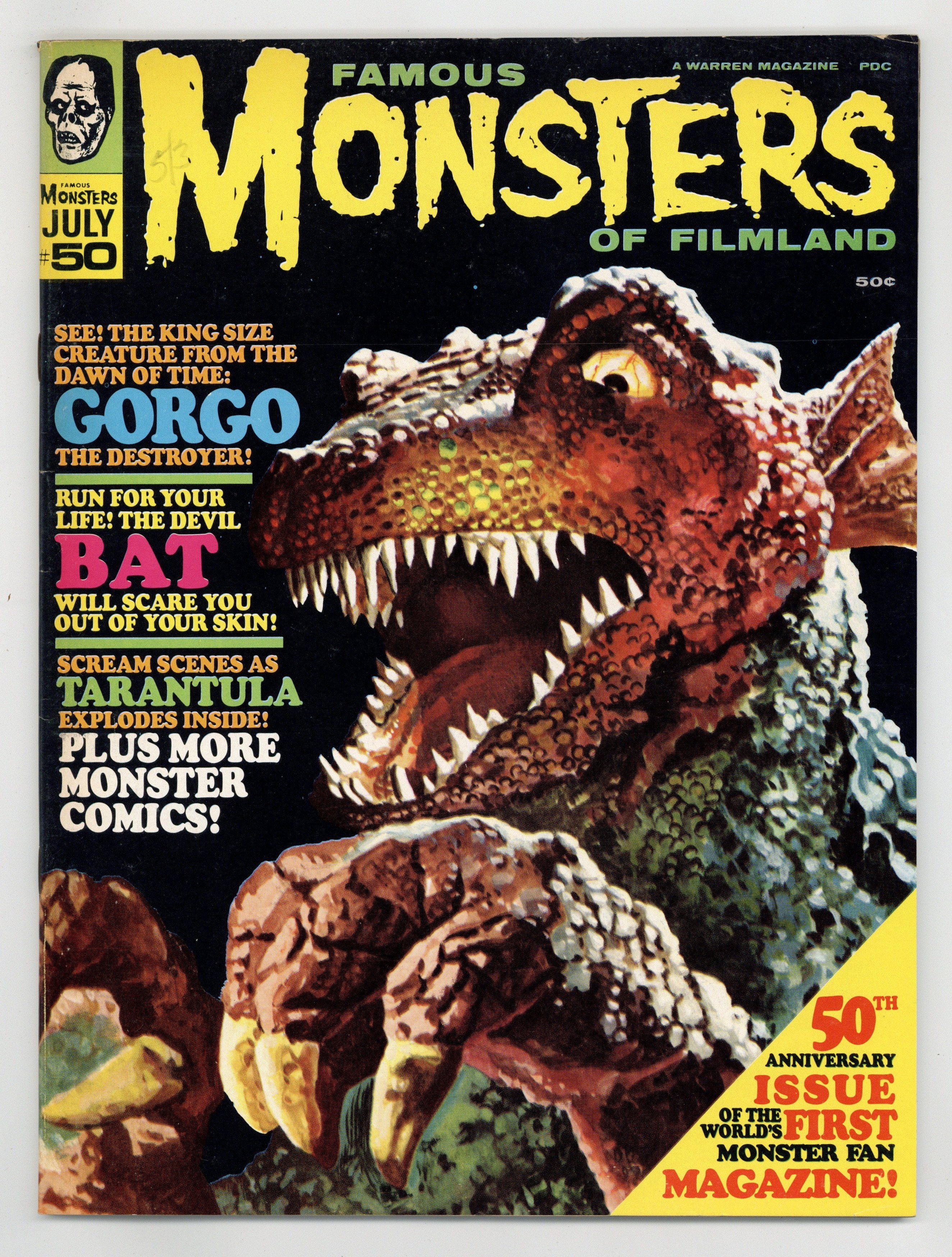Features in this issue include: movie previews; a synopsis of Lugosi's The Devil Bat; Gorgo the Gargantuan filmbook; a feature on makeup artist Ben Nye; "Horror of Dracula" (reprinted comic); and more. The Basil Gogos cover painting of Gorgo is reprinted from issue #11. Cover price $0.50.