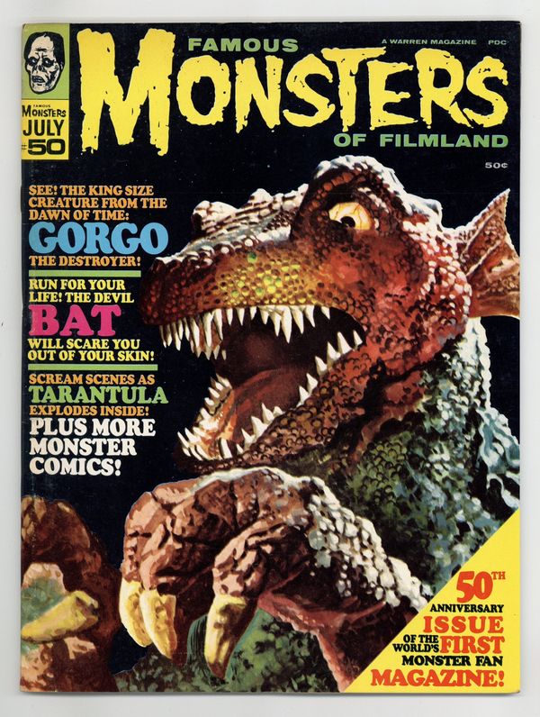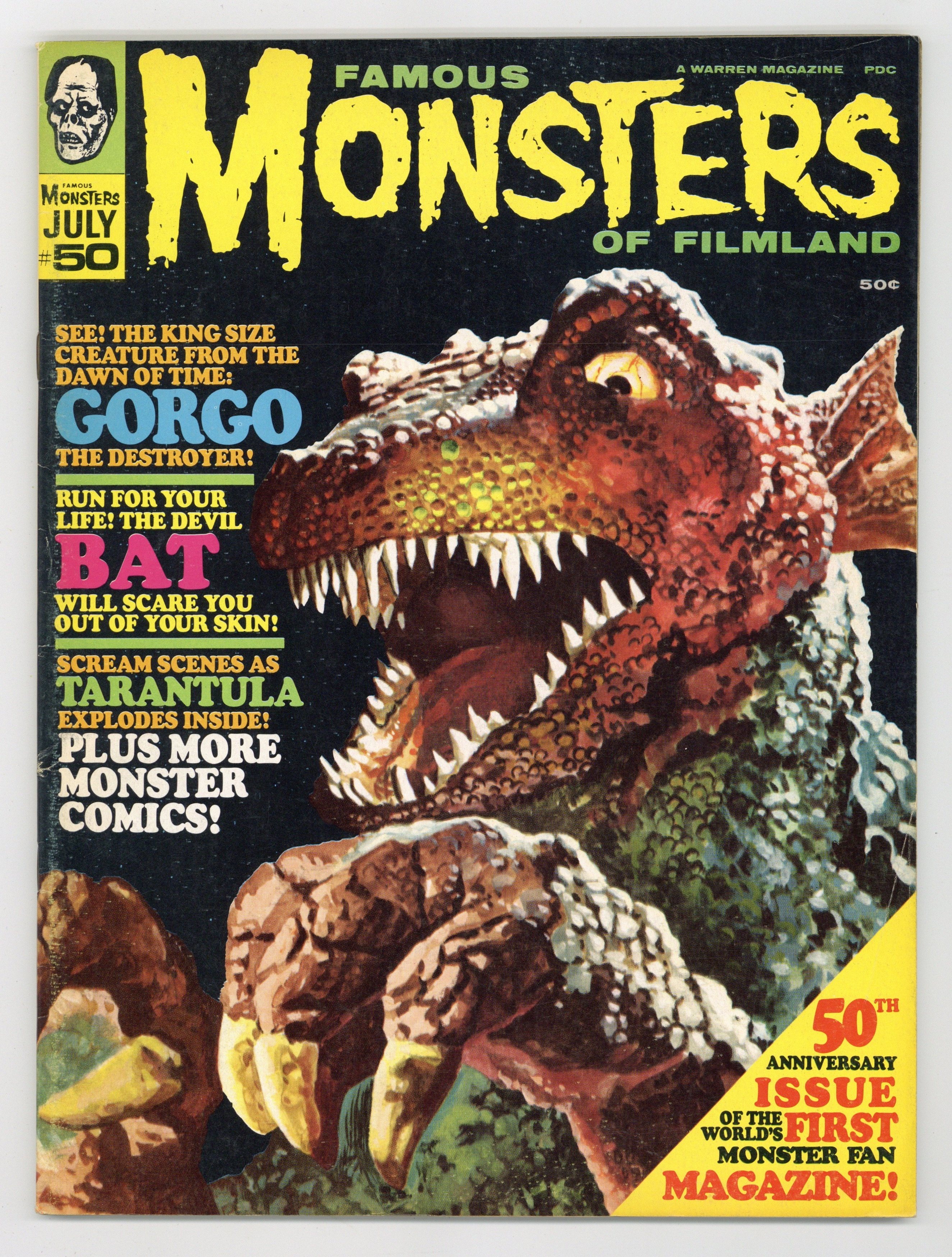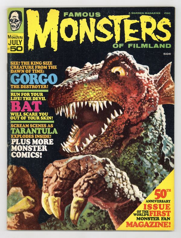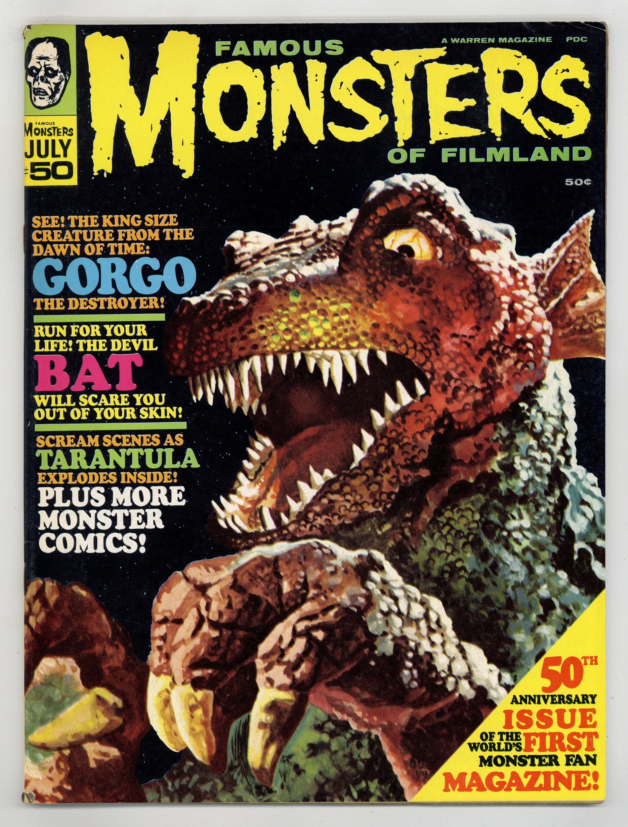 Features in this issue include: movie previews; a synopsis of Lugosi's The Devil Bat; Gorgo the Gargantuan filmbook; a feature on makeup artist Ben Nye; "Horror of Dracula" (reprinted comic); and more. The Basil Gogos cover painting of Gorgo is reprinted from issue #11. Cover price $0.50.