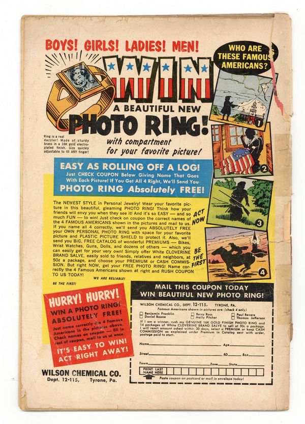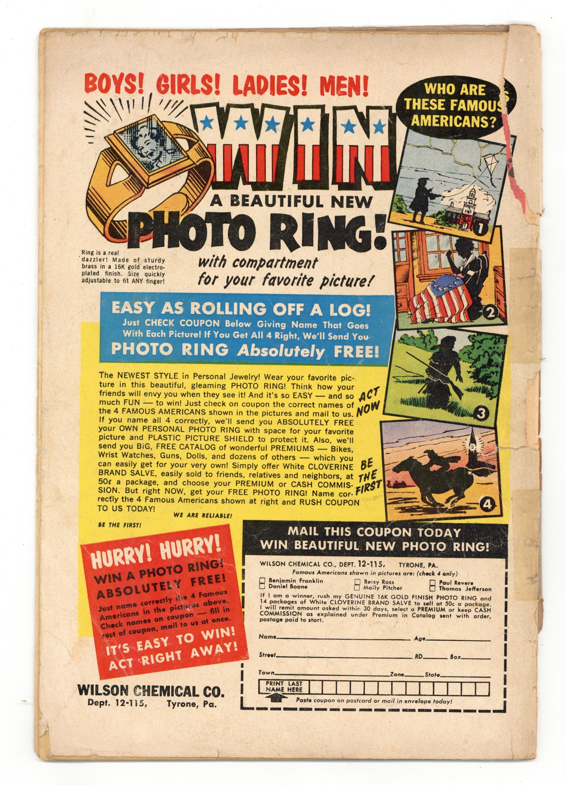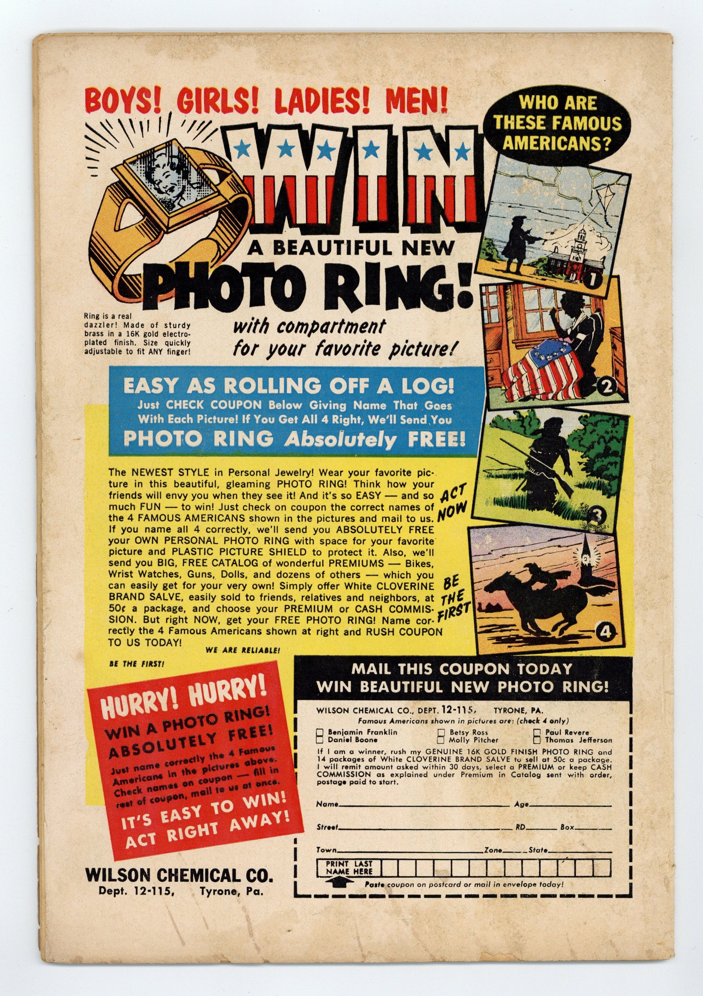 Cover by Sheldon Moldoff. "Robin's New Boss," script by Bill Finger, pencils by Sheldon Moldoff, inks by Charles Paris; Robin informs Batman that he is quitting the team to join up with a new crime fighter on the scene, Mr. Marvel, although Batman doesn't suspect the real reason why. Our American Heritage public service announcement, art by Bernard Baily. "The Bandit with 1,000 Brands," script by Bill Finger, art by Sheldon Moldoff; Batman faces a clever new foe that leaves cattle brands behind as clues. One-page Jail Jests story by Henry Boltinoff. "Teacher from the Stars," script by Bill Finger, pencils by Sheldon Moldoff, inks by Charles Paris; Batman agrees to give an alien teacher and his students a tour of Gotham City, but when they begin to misbehave, it causes more than just a headache for the Caped Crusader. Statement of ownership; average sales 502,000. 36 Pages, Full Color. Cover price $0.10.