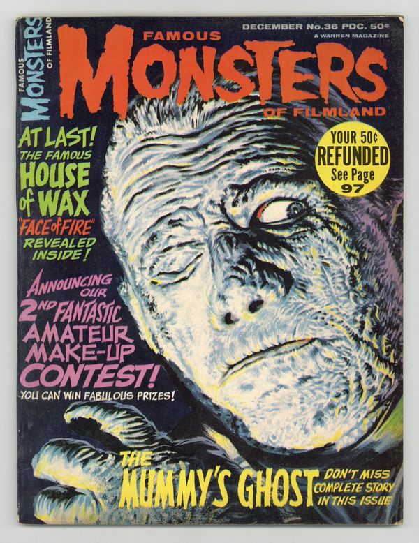 Features in this issue include: a "Monster Makeup Handbook" by Dick Smith; a transcript of Forry's appearance on a television program called The Joe Franklin Show; filmbooks of The Alligator People, St. George and the Seven Curses, The Return of the Fly; and The Mummy's Ghost; and more. The cover painting of Lon Chaney Jr. as The Mummy is by Vic Prezio. Cover price $0.50.