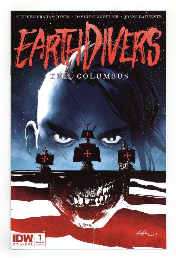 Published Oct 2022 by IDW Publishing.$8.70Written by Stephen Jones. Art by Davide Gianfelice. Stephen Graham Jones—New York Times bestselling author of The Only Good Indians and My Heart is a Chainsaw—makes his ongoing comics debut with Earthdivers!The year is 2112, and its the apocalypse exactly as expected: rivers receding, oceans rising, civilization crumbling. Humanity has given up hope, except for a group of Indigenous outcasts who have discovered a time travel portal in a cave in the desert and figured out where everything took a turn for the worst: America.Convinced that the only way to save the world is to rewrite its past, they send one of their own—a reluctant linguist named Tad—on a bloody, one-way mission to 1492 to kill Christopher Columbus before he reaches the so-called New World. But there are steep costs to disrupting the timeline, and taking down an icon isnt an easy task for an academic with no tactical training and only a wavering moral compass to guide him. As the horror of the task ahead unfolds and Tads commitment is tested, his actions could trigger a devastating new fate for his friends and the future.Join Stephen Graham Jones and artist Davide Gianfelice for Earthdivers #1, the beginning of an unforgettable ongoing sci-fi slasher spanning centuries of America's colonial past to explore the staggering forces of history and the individual choices we make to survive it. 32 pages, full color. Mature Readers Cover price $3.99.