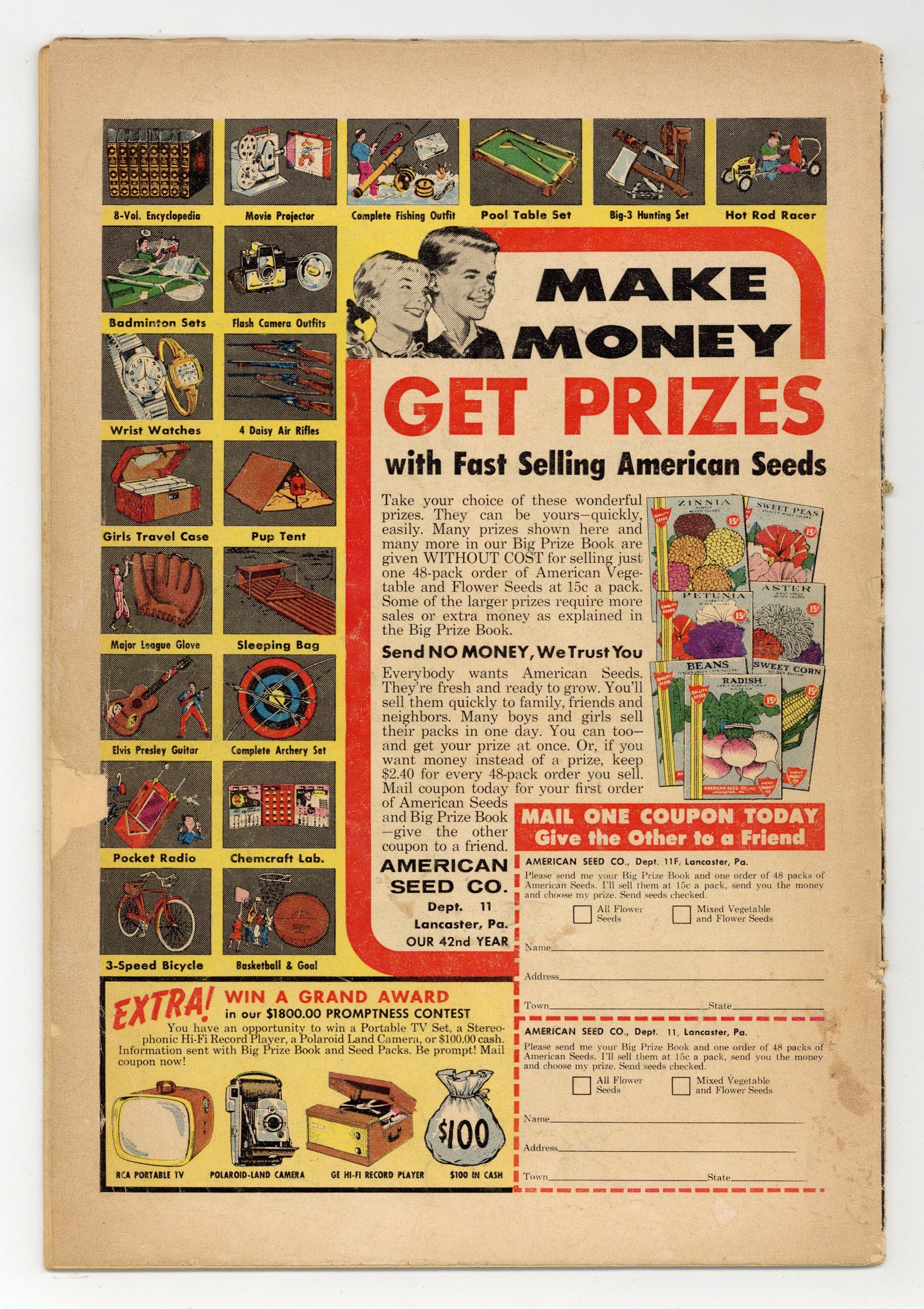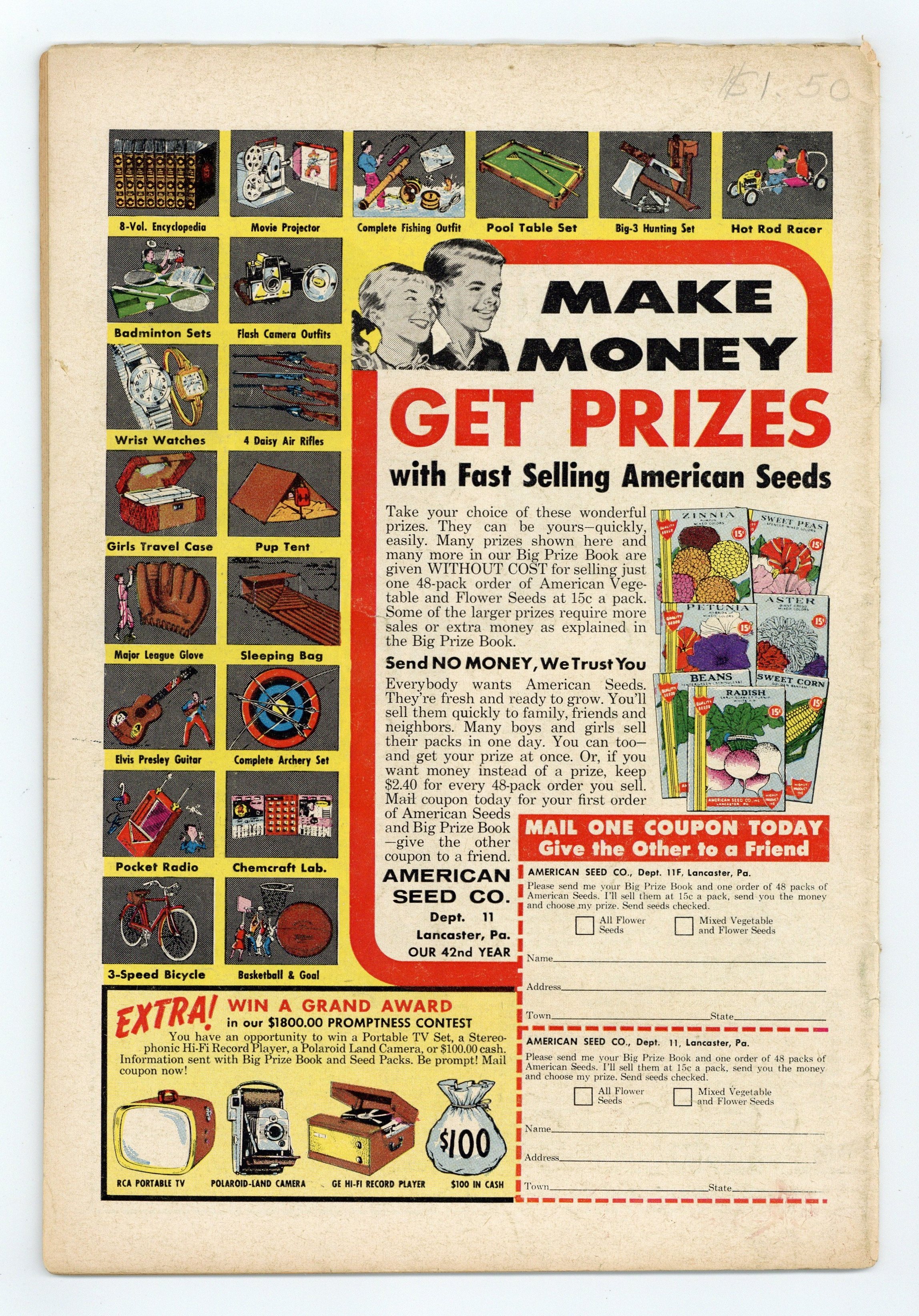 Starts Apr 27 Cover by Sheldon Moldoff. "Batman's Deadly Birthday," script by Bill Finger, pencils by Dick Sprang, inks by Stan Kaye; Gotham City prepares a number of fund-raising events to celebrate the anniversary of Batman's first case; At every event, however, criminals manage to make off with the proceeds. Detective Comics #276 ad. Buzzy's "Famous Books" Quiz public service announcement with Buzzy, script by Jack Schiff, art by Ruben Moreira. "The Master of Weapons," script by Bill Finger, pencils by Sheldon Moldoff, inks by Charles Paris; Graham is Paragon Pictures' technical director and designer of many historical weapons; While arguing with studio accountant Bailey over his need for more money, he takes a fall from a set piece, and is rushed to the hospital; Some time later, he vanishes from the hospital; One week later a new costumed villain hits Gotham, one armed with ancient weapons. Justice League of America ad. One-page Warden Willis story by Henry Boltinoff. "The Hand from Nowhere," script by Bill Finger, pencils by Sheldon Moldoff (as Bob Kane), inks by Charles Paris; Batman investigates reports of a mysterious giant hand and some aliens present at thefts of seemingly worthless minerals. World's Finest Comics #108 ad. 36 Pages, Full Color. Cover price $0.10.