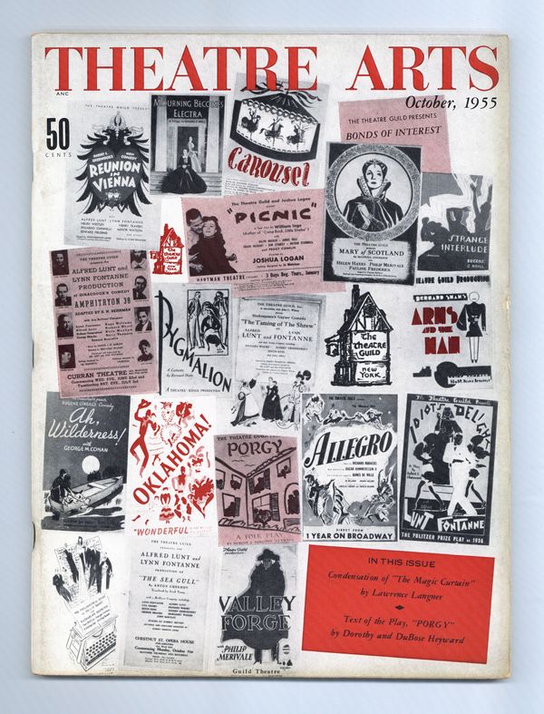 Published Oct 1955 by Theatre Arts, Inc..$19.00Theatre Arts is legendary for its thorough and insightful coverage of the stage, both in American and England. Less well-known is the fact that TAM also provided some outstanding coverage of motion pictures, Broadway and Hollywood. 8.5" x 11", 100 pages, B&W with spot color. Cover price $0.50.