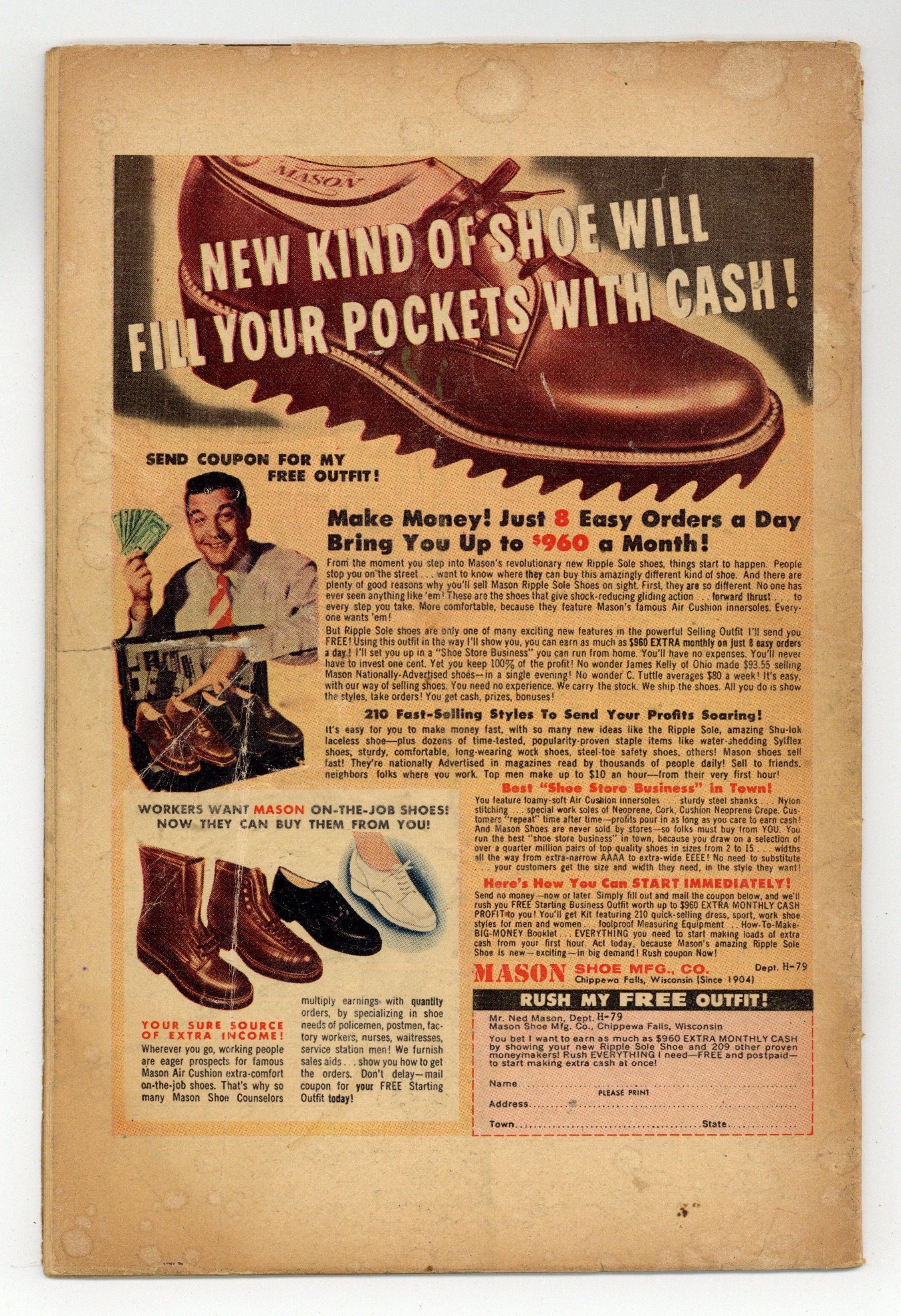 $75.00- 2 1/4" tear on back cover. Heavy water spotting/damage. Cover oxidation. Brittle.