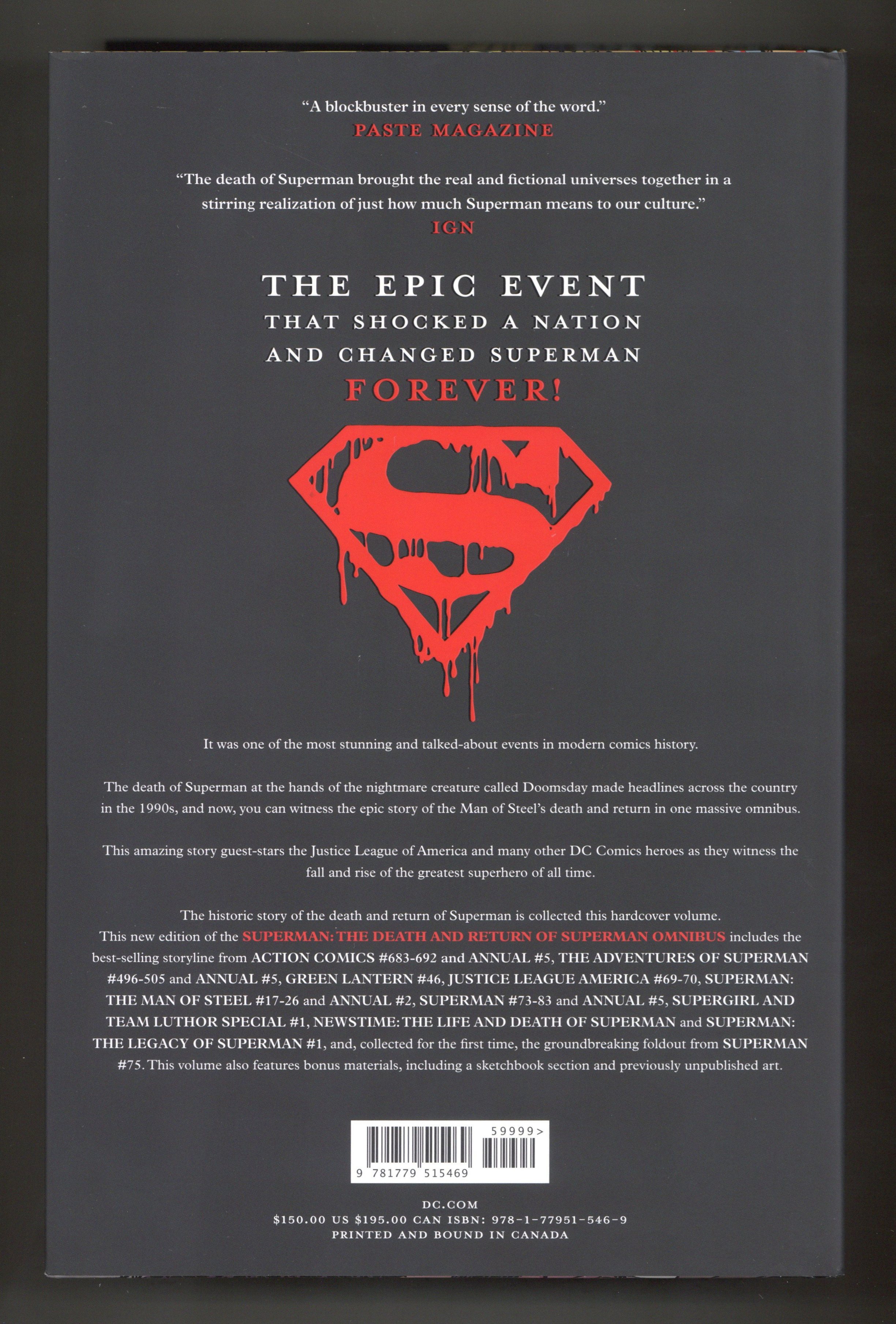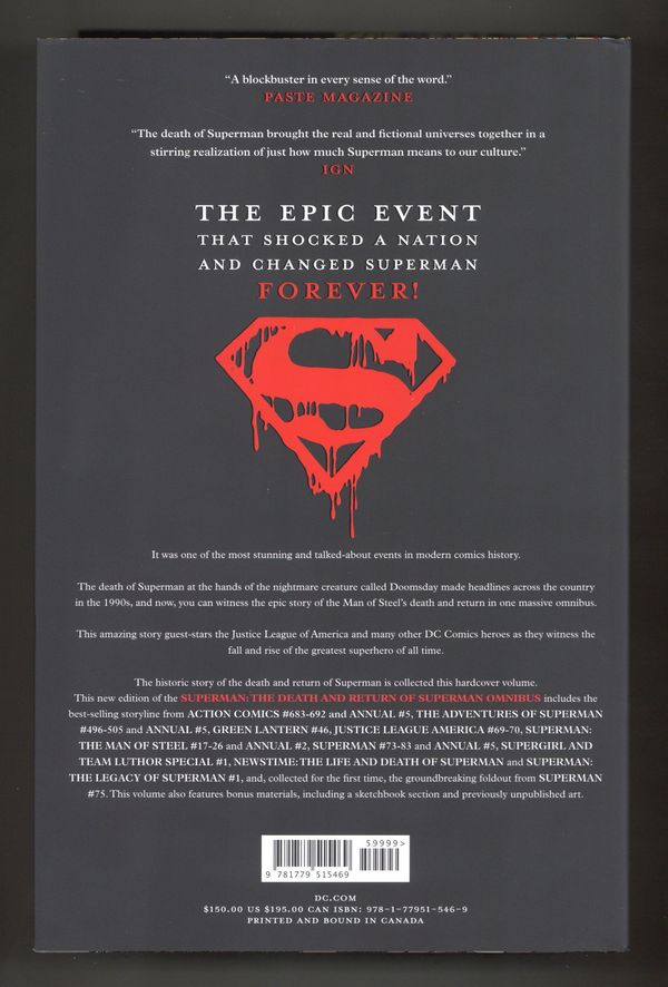 3rd Edition - 2nd and later printings. Collects Superman: The Man of Steel (1991) #17-26, Superman (1987-2011 2nd Series) #73-83, The Adventures of Superman (1987-2006) #496-505, Action Comics (1938-2011 DC) #683-692, Justice League America (1987-1996) #69, Superman: The Legacy of Superman (1993) #1 and Green Lantern (1990-2004 2nd Series) #46.