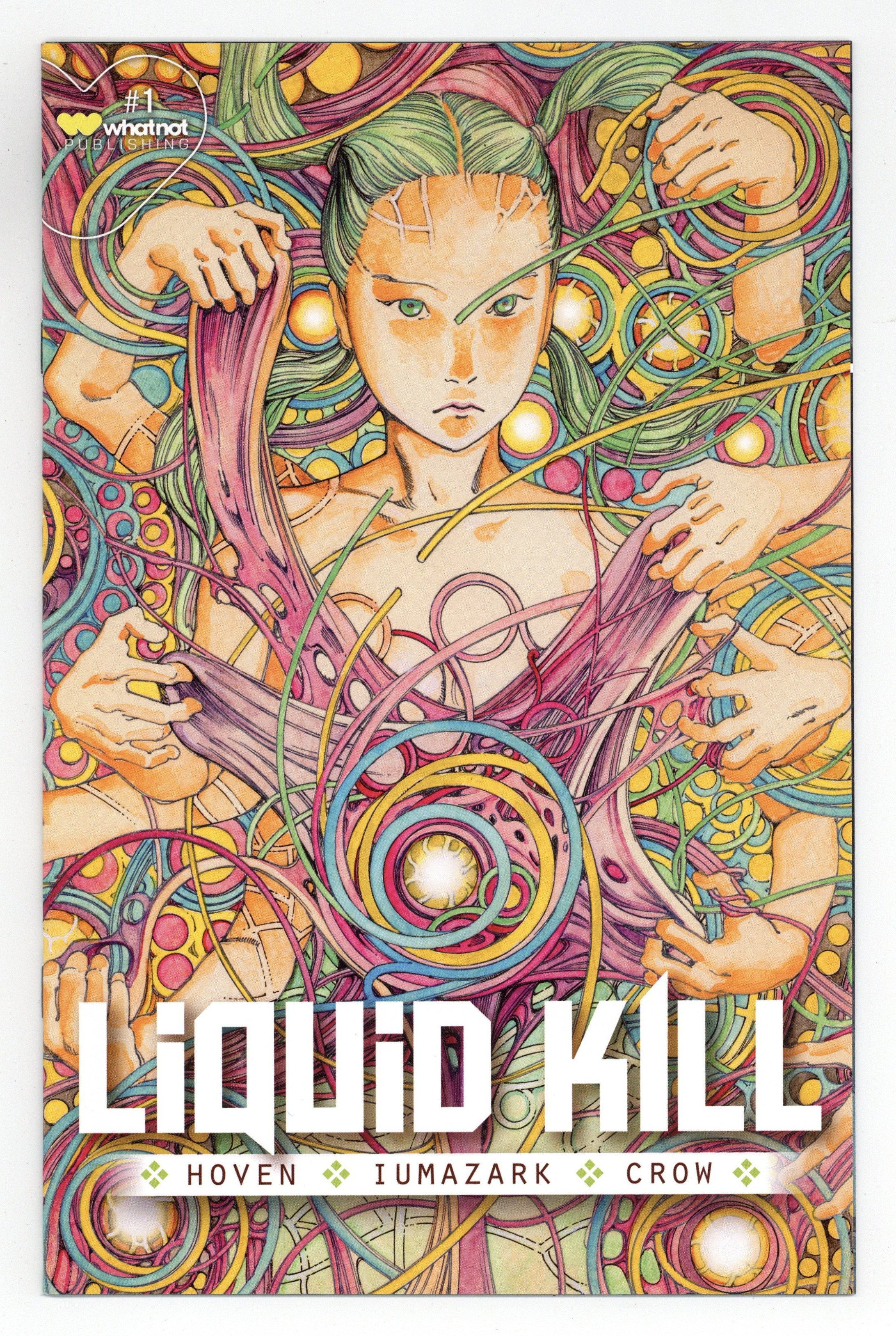 Limited 1 for 50 Retailer Incentive Variant Cover. Written by Max Hoven, Aaron Crow. Art by Gabriel Iumazark. Cover by Shintaro Kago. Cover by the award-winning master of horror manga Shintaro Kago. LIQUID KILL follows sadist-slaughtering vigilantes as they encounter pure evil in a blood-soaked cyberpunk future (à la GHOST IN THE SHELL meets JOHN WICK) written by the creators of the critically-acclaimed series IT EATS WHAT FEEDS IT and artist Gabriel Iumazark (Boom! Studios). For the staff and clientele of a mysterious island hotel, it's just another night of luxury and vice until members of Liquid Kill (a notoriously violent, all-female militia), lay siege. Demanding compliance or death as they gather intelligence, the adrenaline quickly floods the halls as the team eliminates all threats with ease in their search for their kidnapped leader. That is until something is unleashed… something hungry. If there's anyone prepared for the evils on the island, it's these fearless killers, but when the undaunted begin to falter, their foe must be truly monstrous. 24 pages, full color. Cover price $3.99.