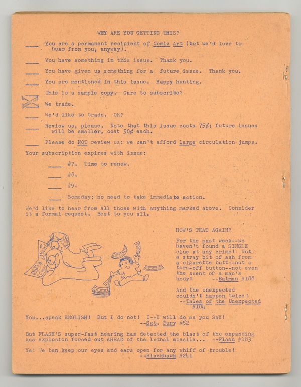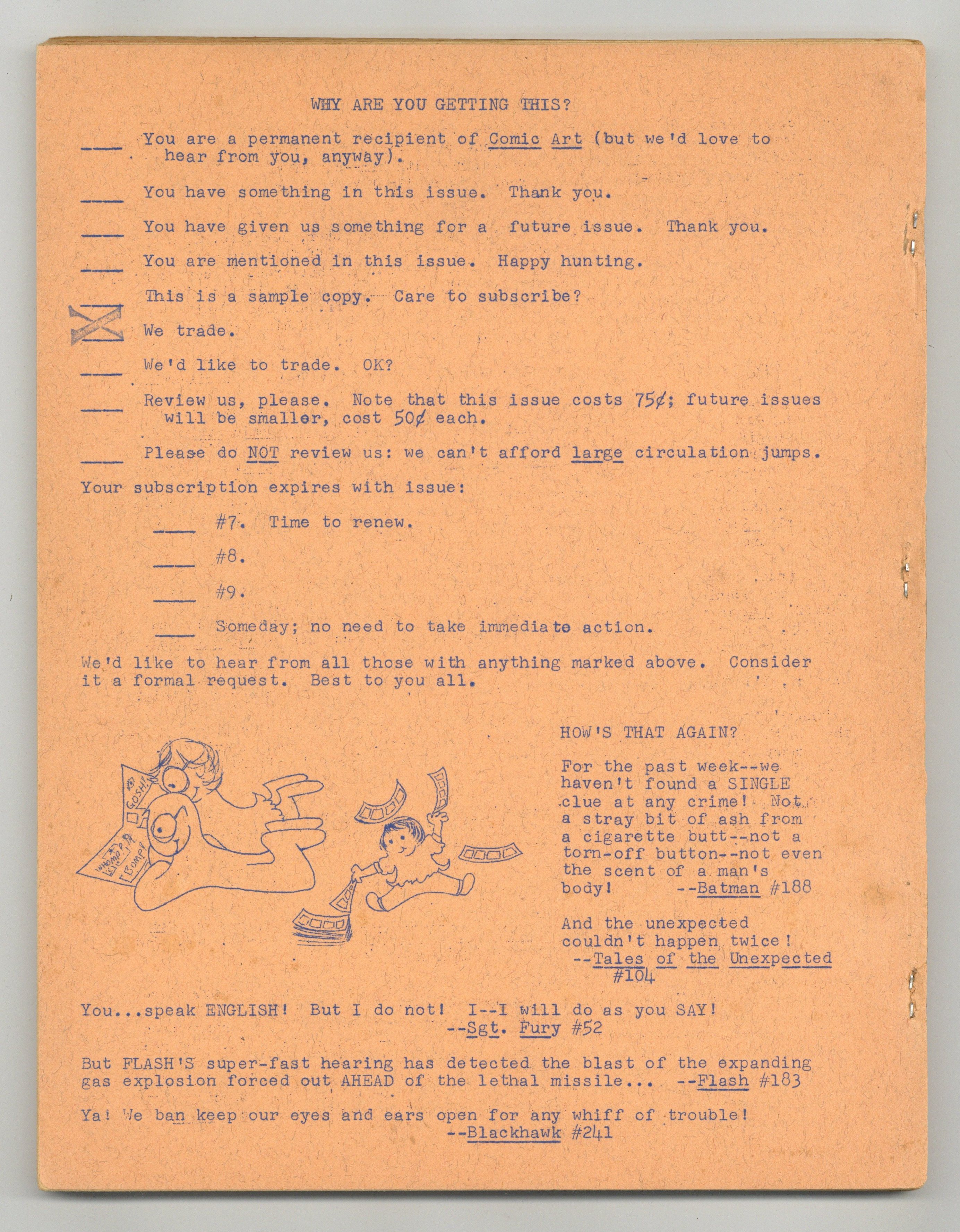Fanzine created by Don and Maggie Thompson. Cover by Carl Barks. This issue with a Harlan Ellison story and multiple articles on Carl Barks. 76 Pages, B&W, 8.25" x 11". Cover price $0.75.